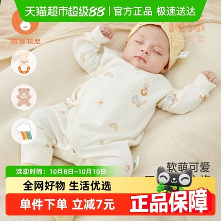 微狮牧尼新生儿婴儿衣服纯棉春秋季宝宝连体衣和尚服哈衣爬服可爱