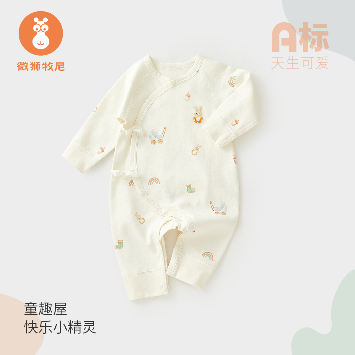 微狮牧尼纯棉春秋系带哈衣