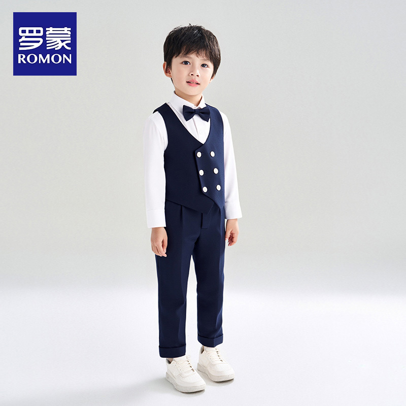 罗蒙男童西装套装帅气英伦儿童西服周岁礼服男宝宝小西装花童生日