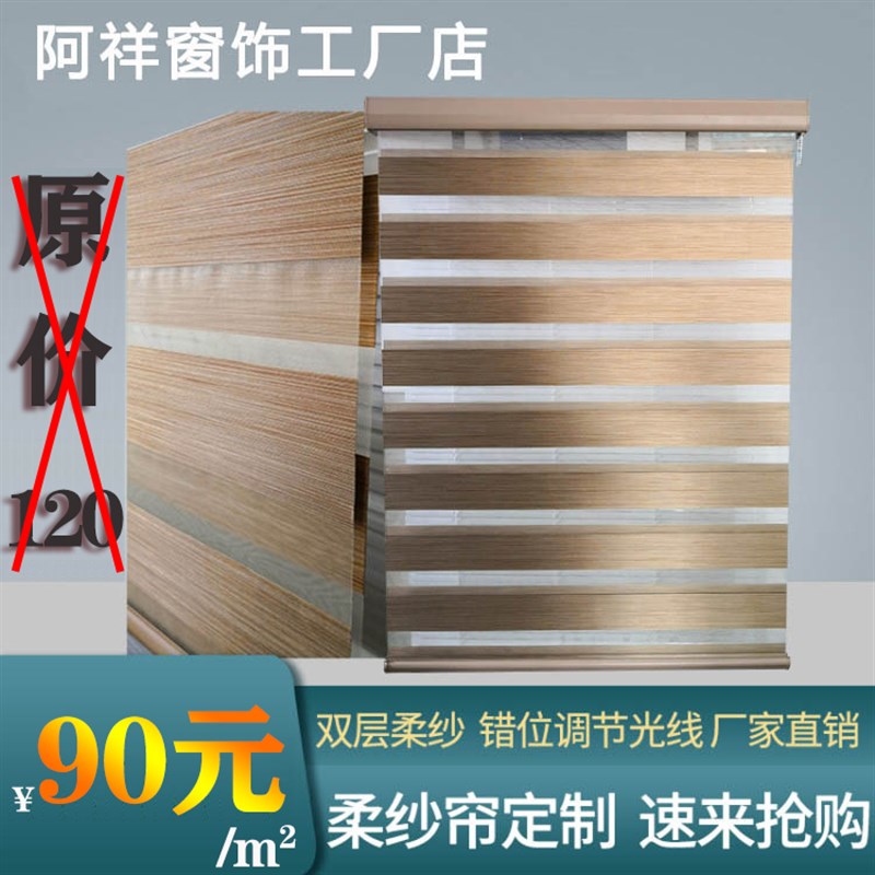 韩式定制柔纱帘双层卷帘浴t室卫生间防水遮光遮阳升降家用百叶窗
