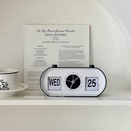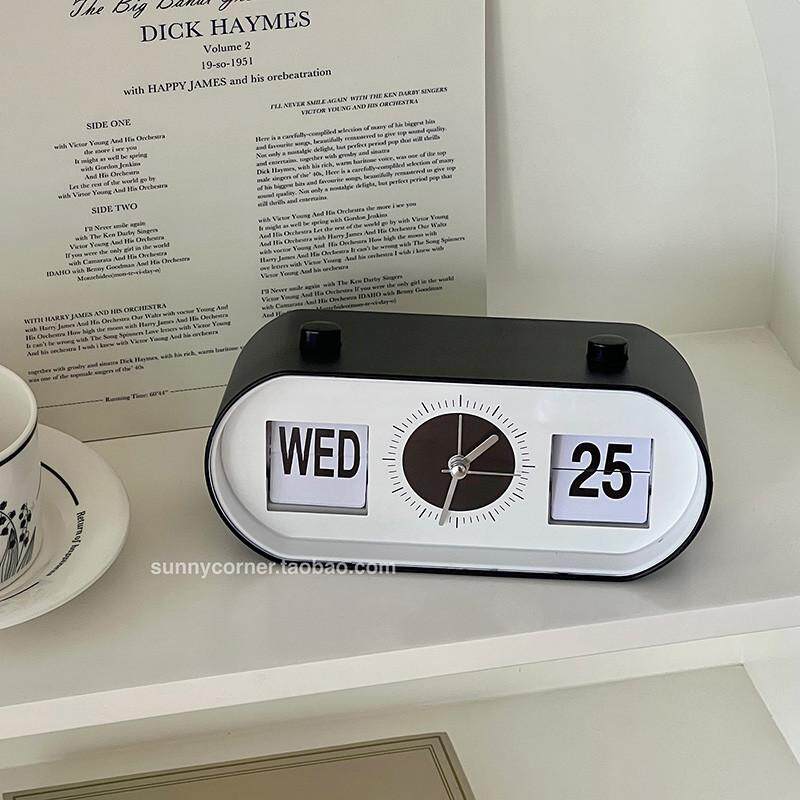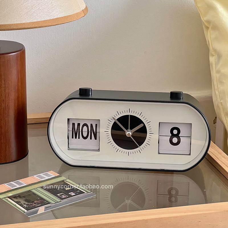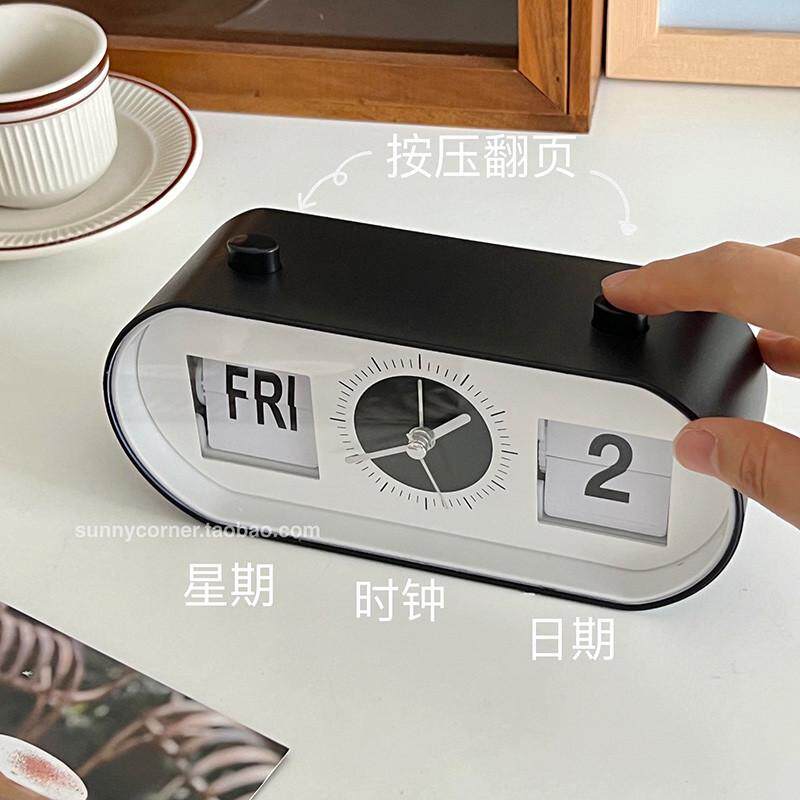 ins简约万年历摆台式电子时钟手动翻页日历台钟桌面静音闹钟摆件