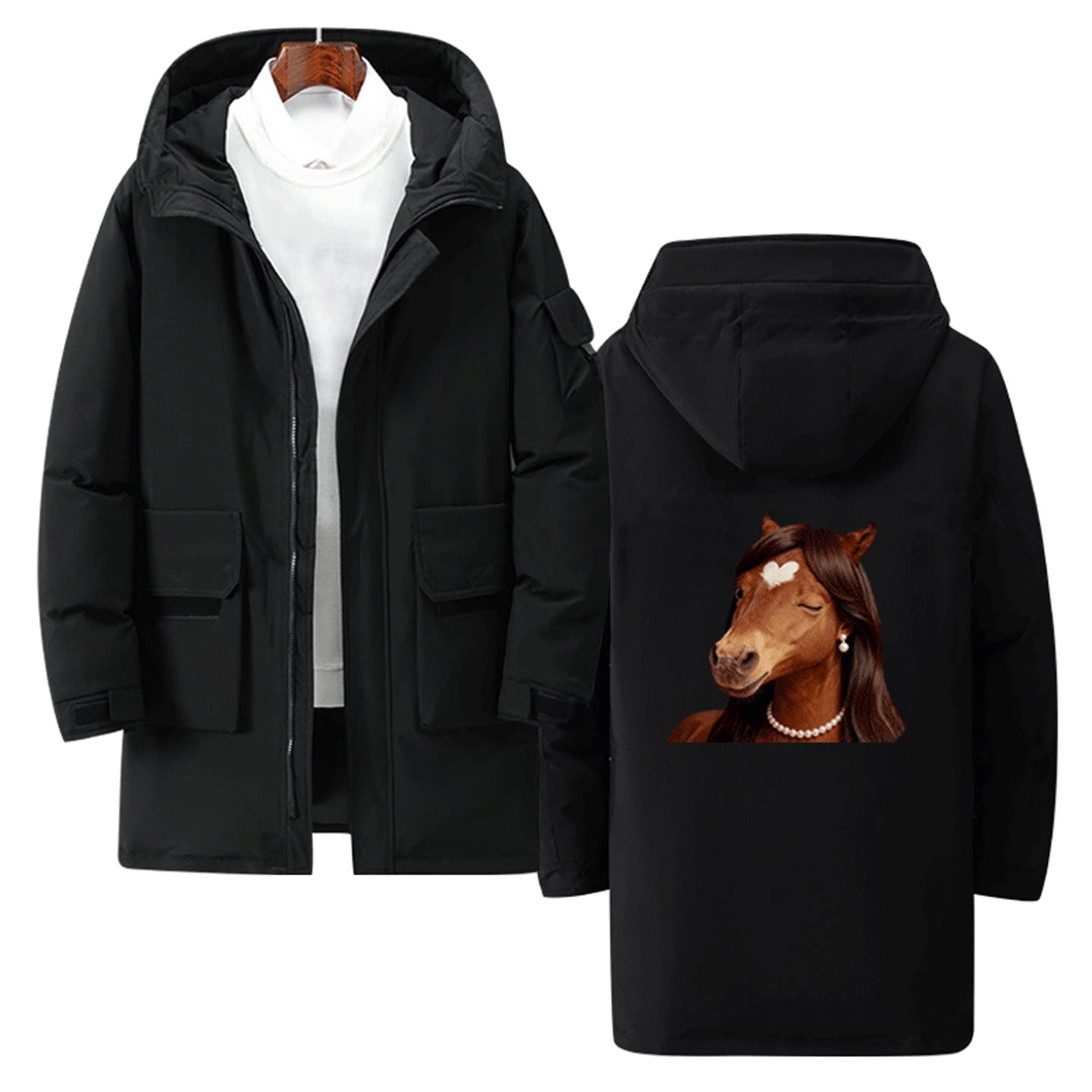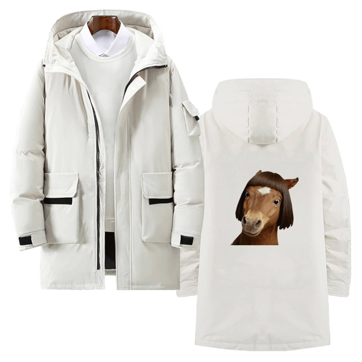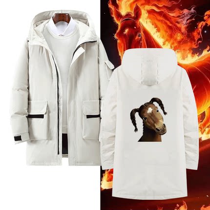 抽象马头像恶搞趣味可定制中长款外套羽绒服卡通可爱图案男女情侣