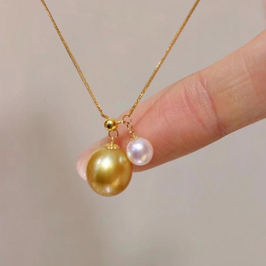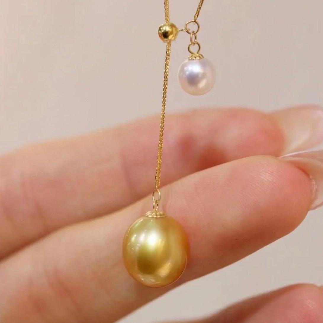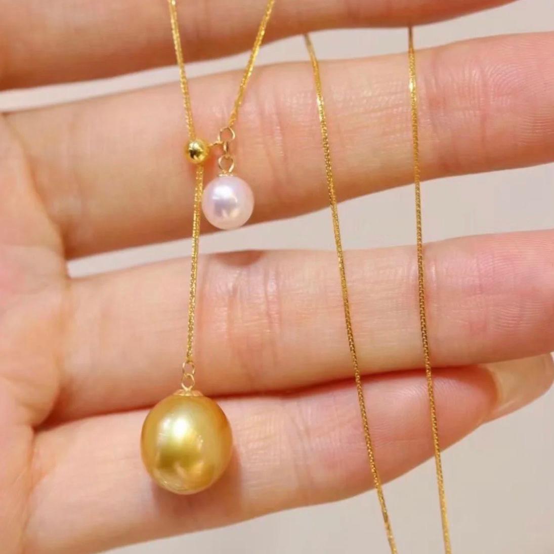 18k金6-13mm海水珍珠套链空托精致肖邦双珠Y链设计时尚裸珠空托