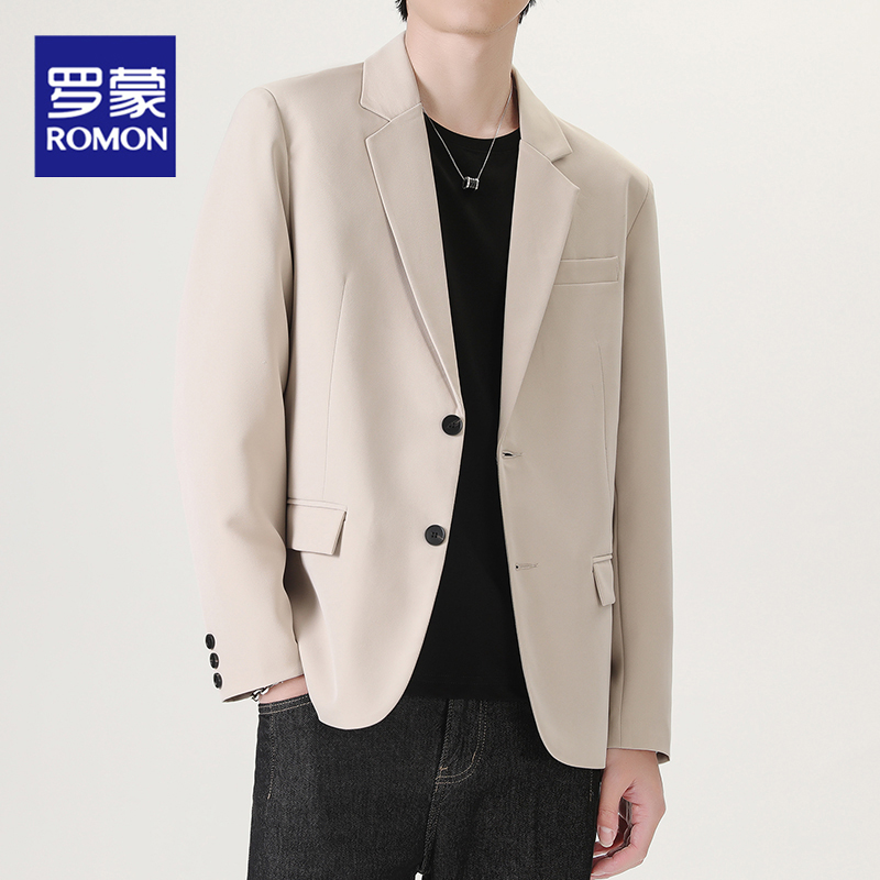 罗蒙西装男士春秋商务休闲外套单西高级垂感韩版痞帅气宽松小西服