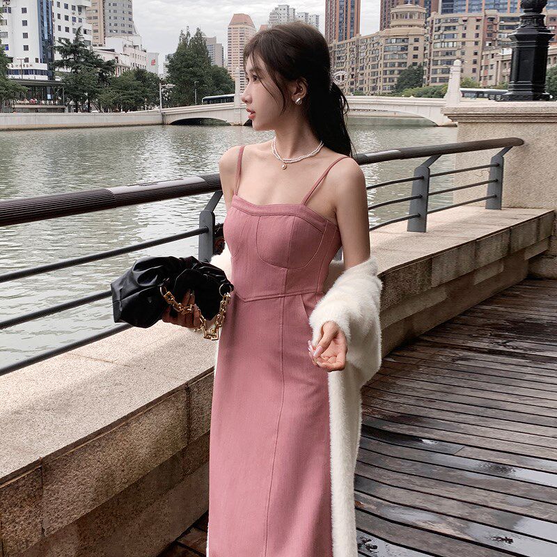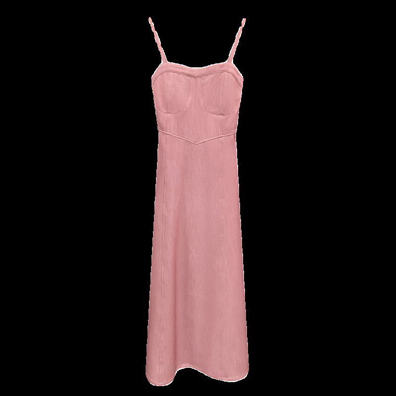 今年流行牛仔连衣裙女2023新款秋季无袖长款配大衣粉色吊带裙长裙