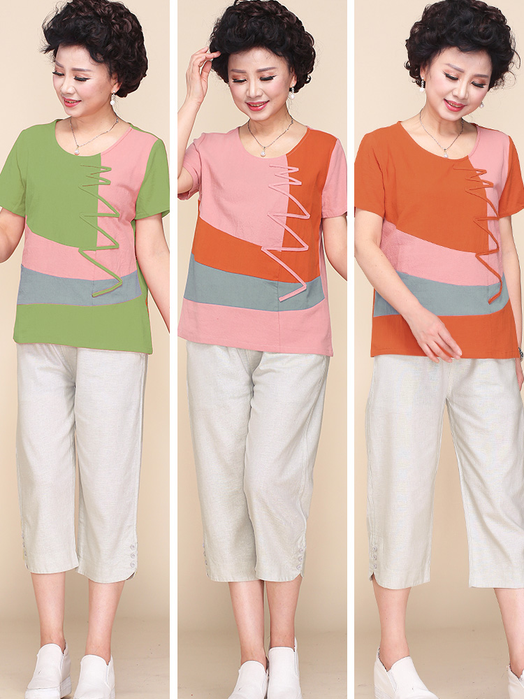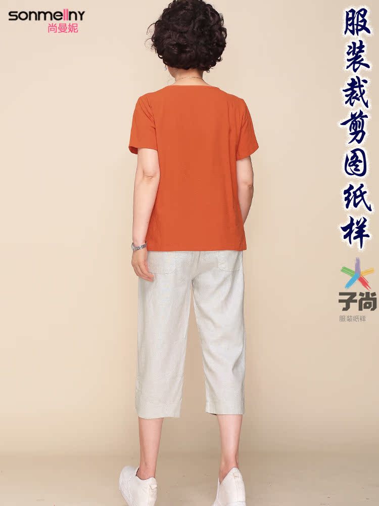 妈妈夏装新款中年女中老年人洋气棉麻仅短袖T恤 剪图缝纫纸样