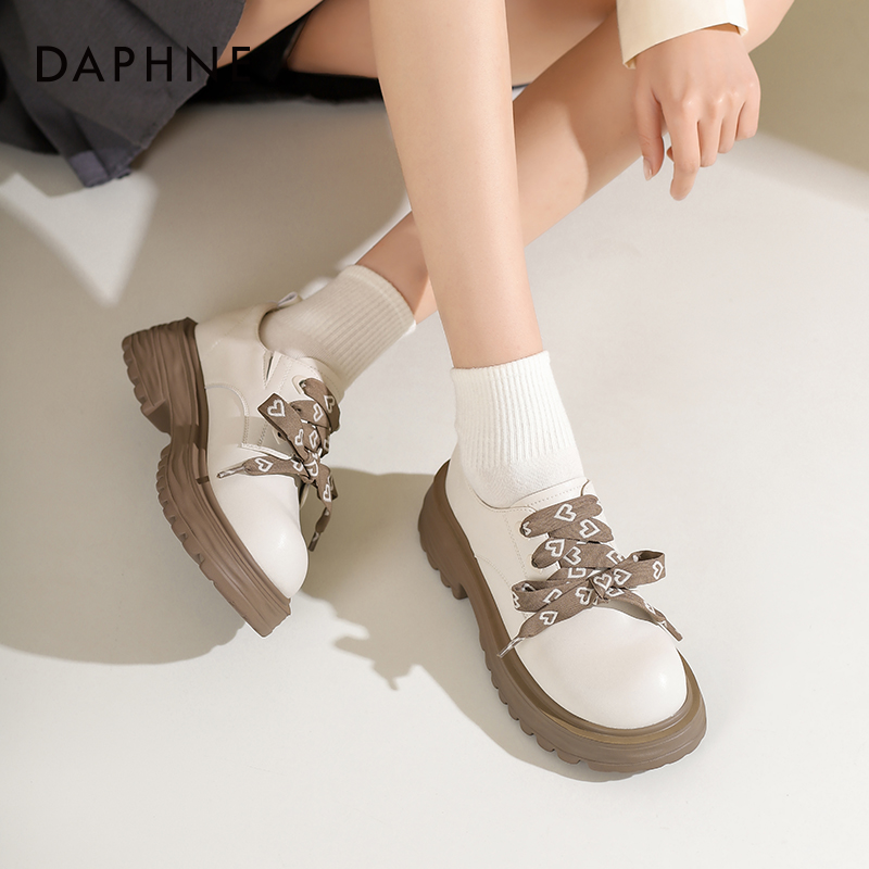 达芙妮厚底乐福鞋女2025新款女鞋米白色单鞋英伦风小皮鞋女款春季