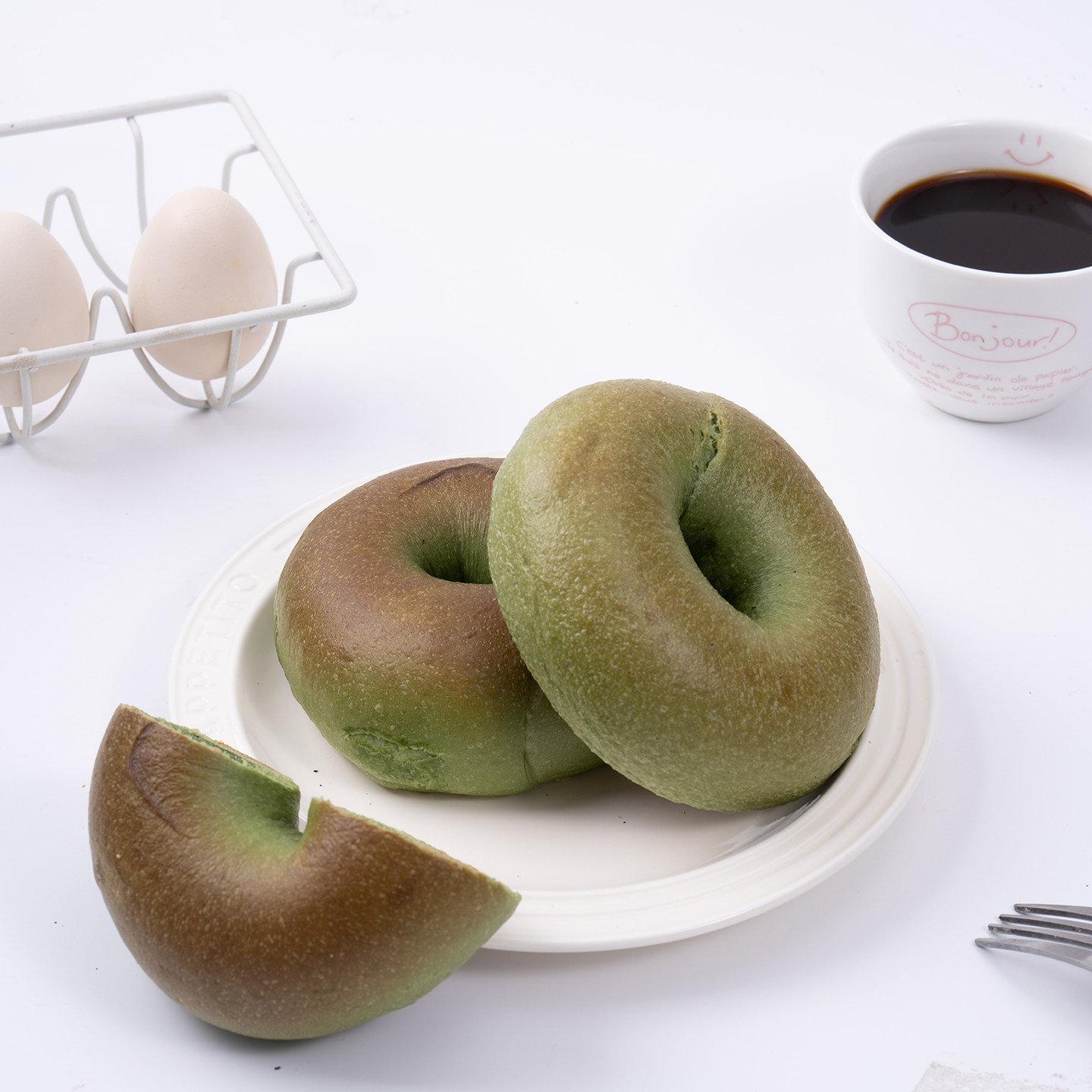 周建生抹茶奶酥夹心贝果面包