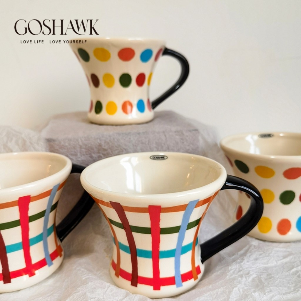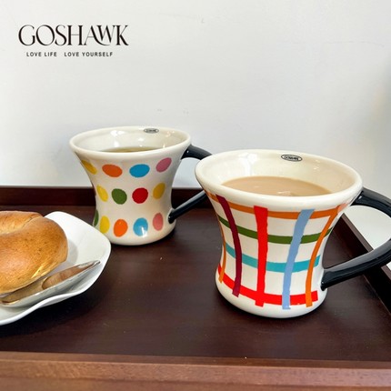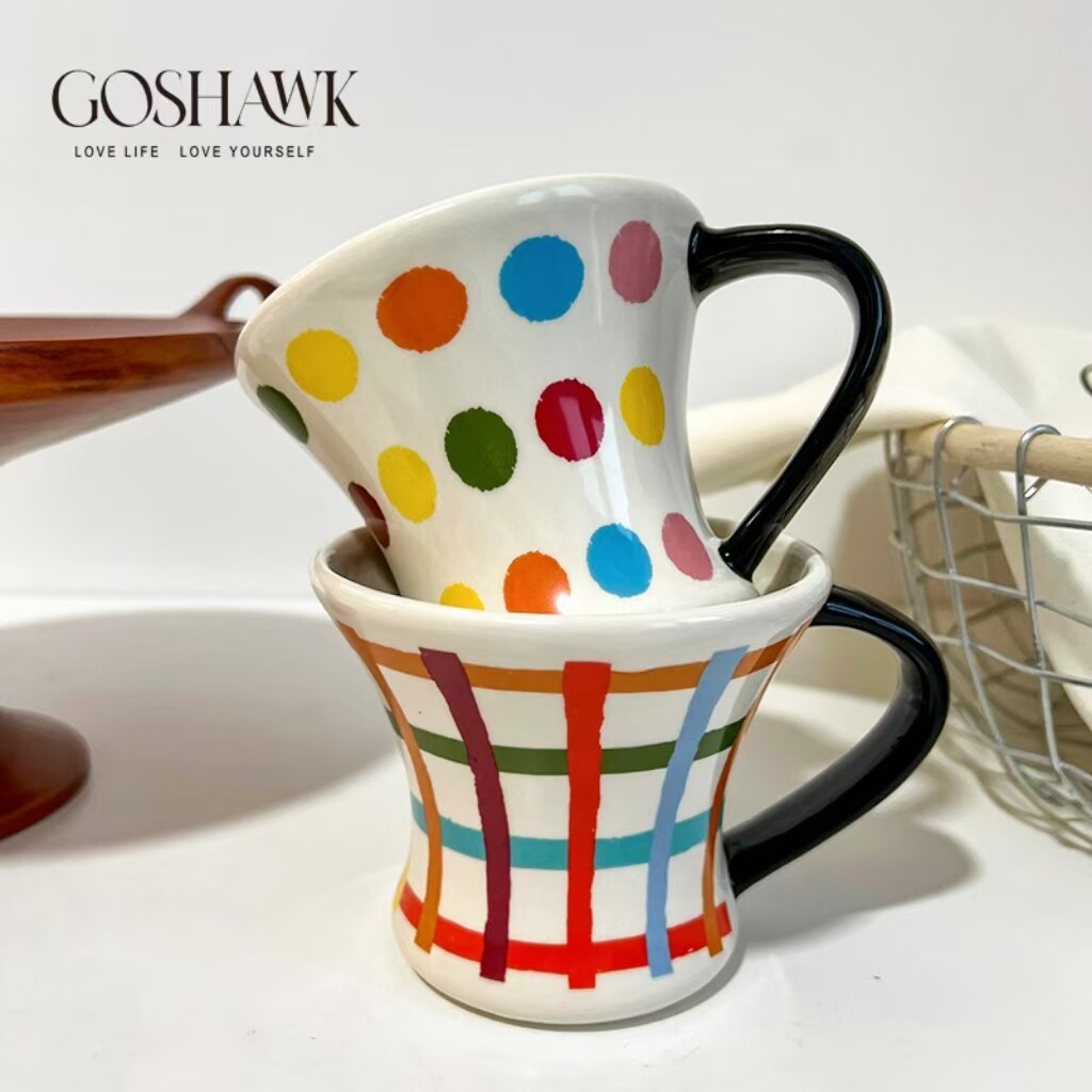 GOSHAWK原创礼物设计系列彩色波点格纹高颜值陶瓷马克杯咖啡杯INS