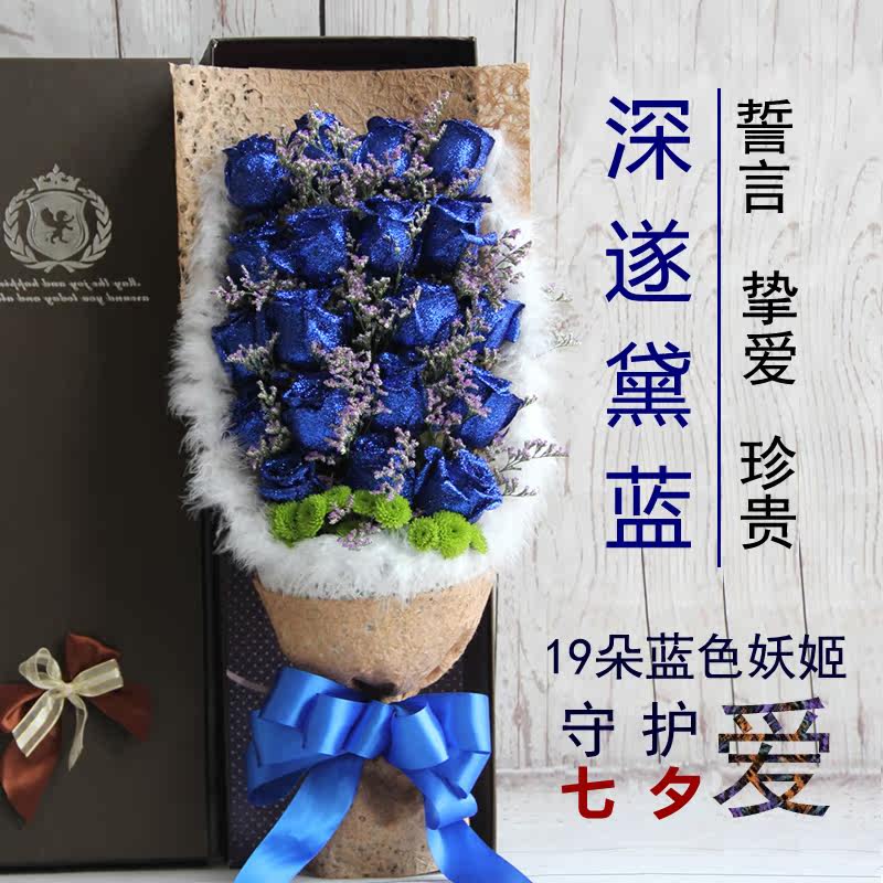 蓝色妖姬礼盒长沙株洲湘潭同城鲜花速递情人节送女友闺蜜生日礼物