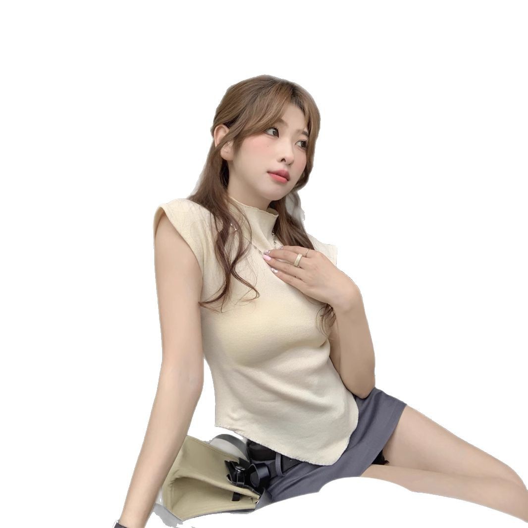 不规则短款设计感短袖针织衫女2025夏季新款修身显瘦半高领打底衫