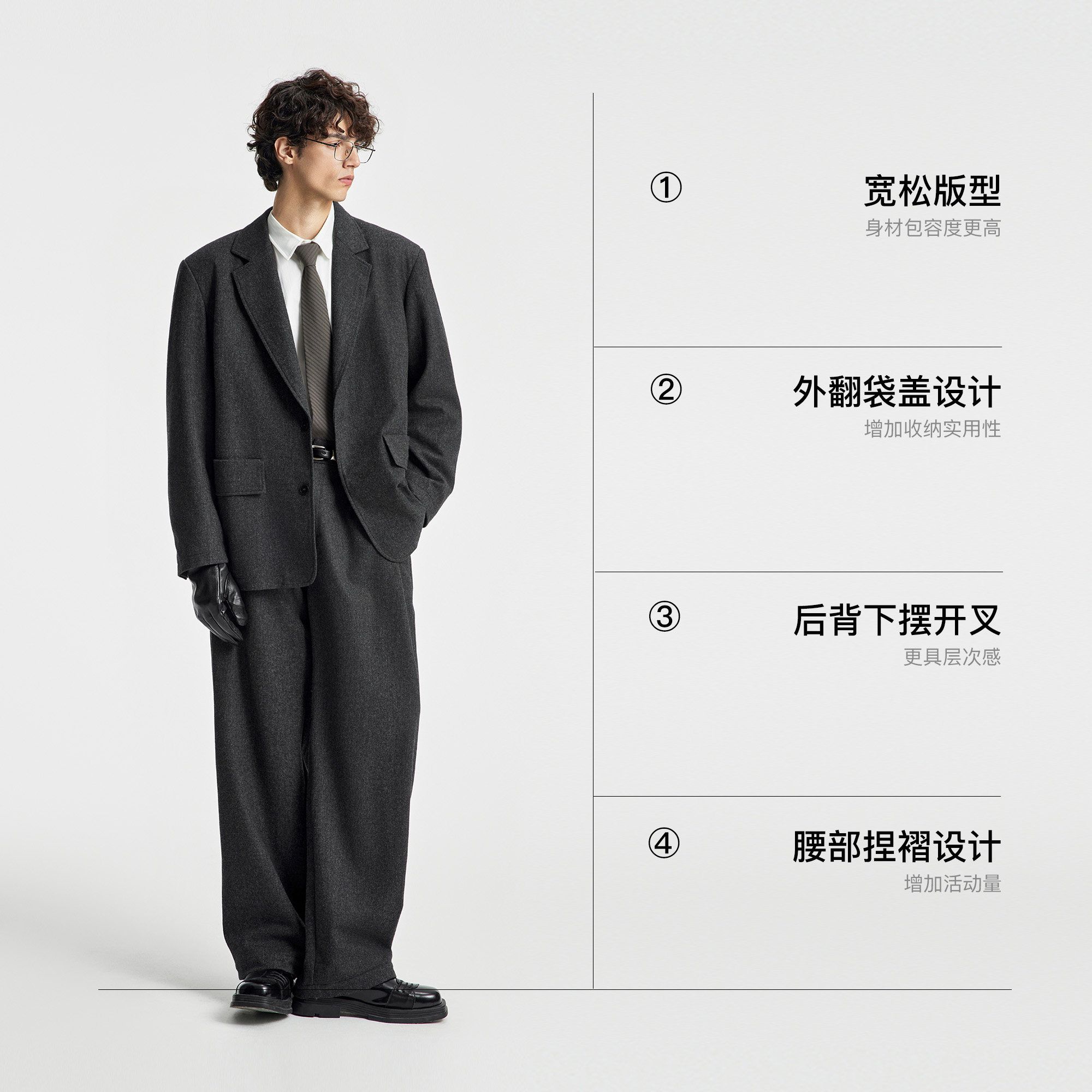 BODYDREAM总裁灰西服外套男GeekChic宽松休闲毛呢西装/羊毛套装