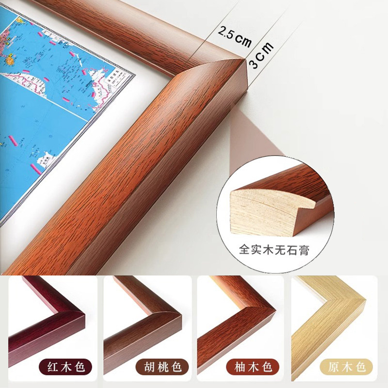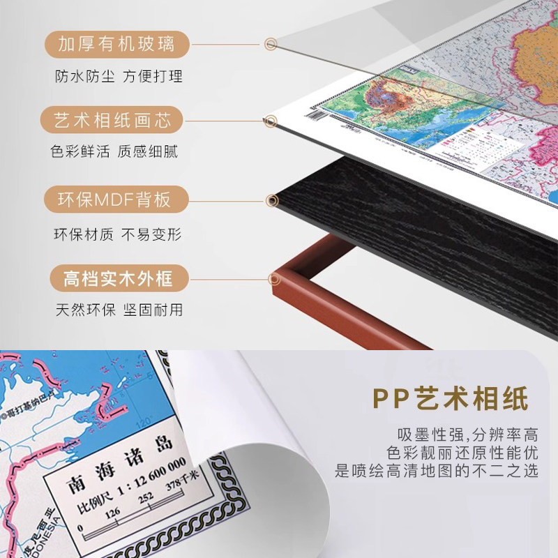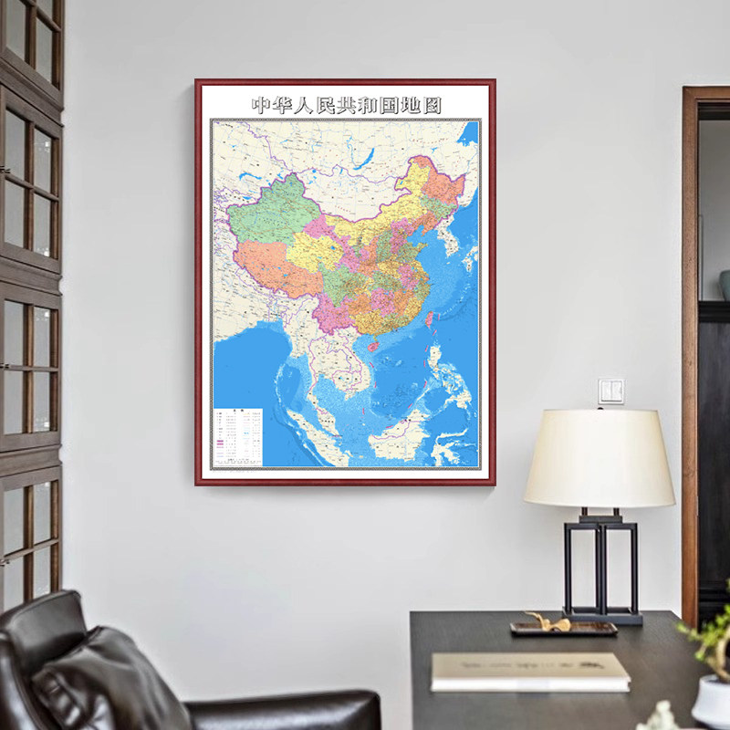 新版中国世界地图挂画竖版带框装裱省份地图办公室背景装饰画定制