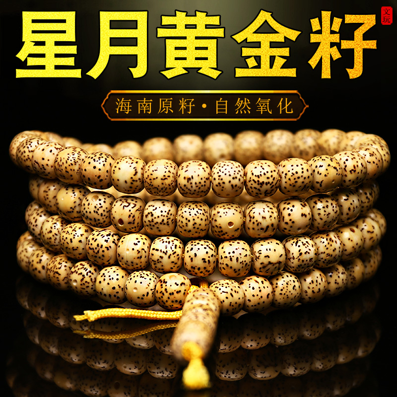 海南籽鸡油黄金星月菩提子桶珠108圆佛珠项链老型手串文玩原生态
