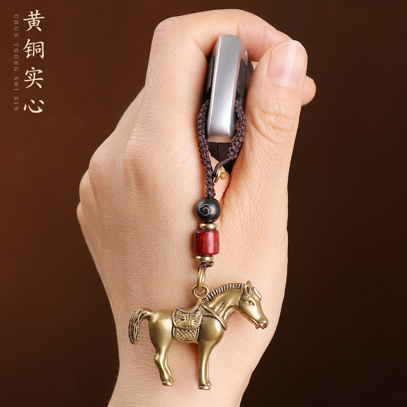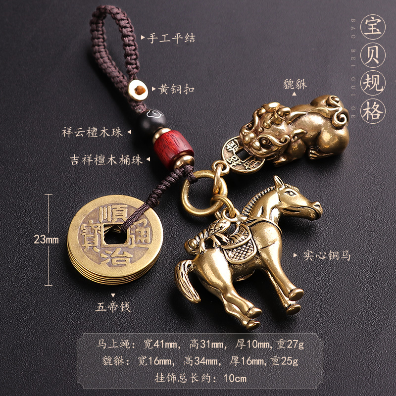 纯黄铜《马上赢钱》钥匙扣挂饰