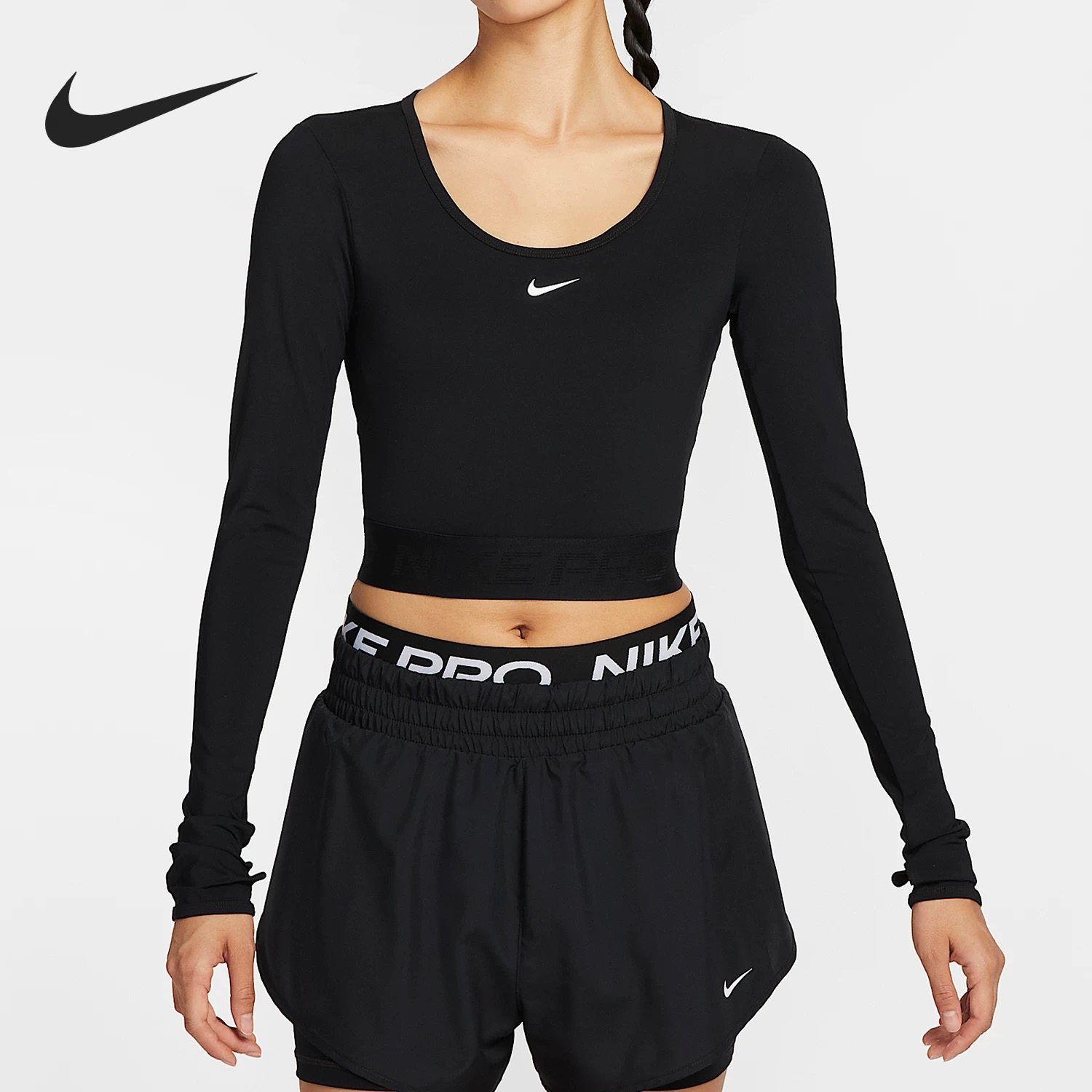 Nike/耐克 女子PRO速干短款修身显瘦运动训练长袖T恤 HV9993-010
