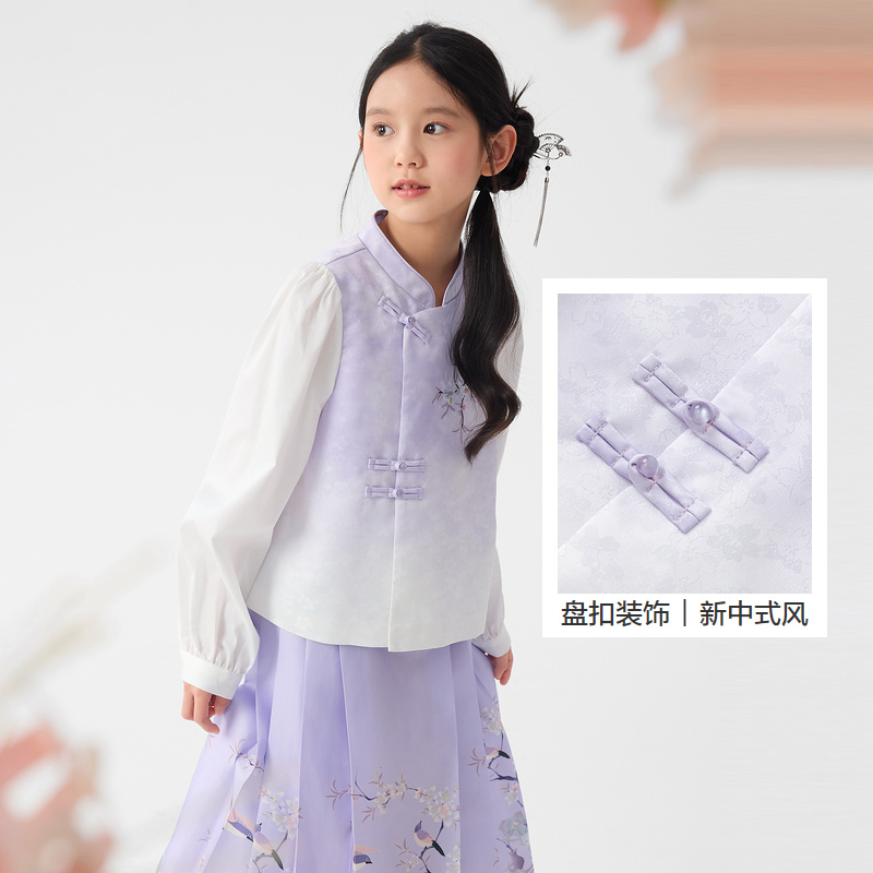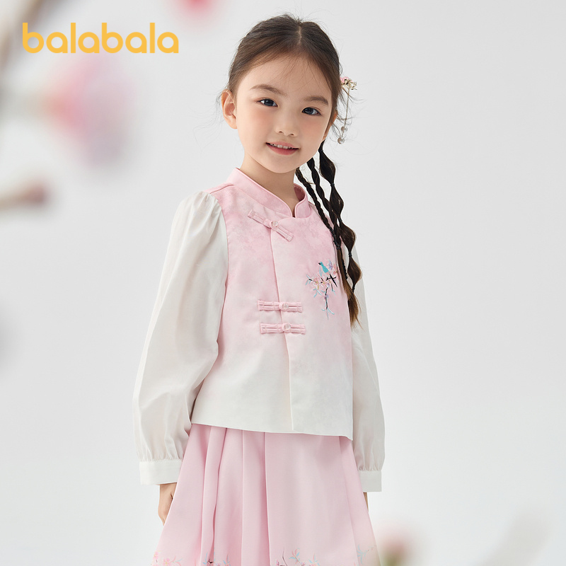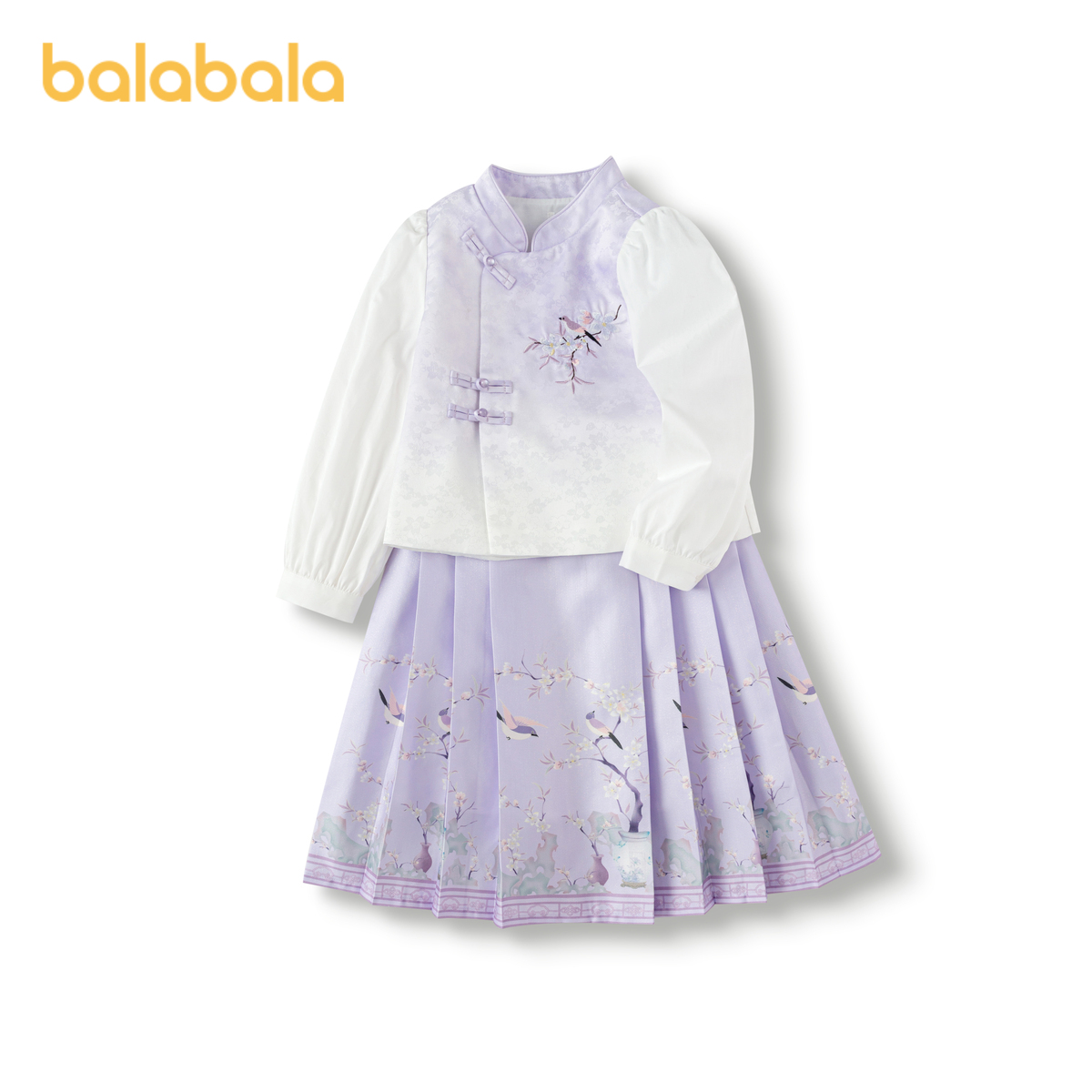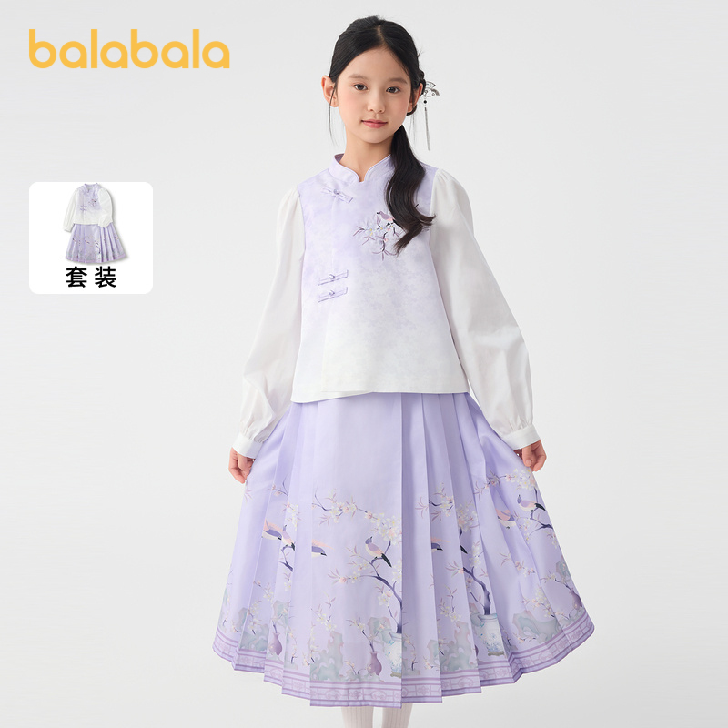 巴拉巴拉女童马面裙儿童汉服裙子2025春装新款国风假两件古风套装