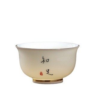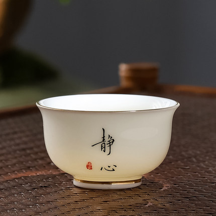 德化白瓷羊脂玉茶杯单个主人杯功夫茶具高端品茗杯描金小茶杯陶瓷