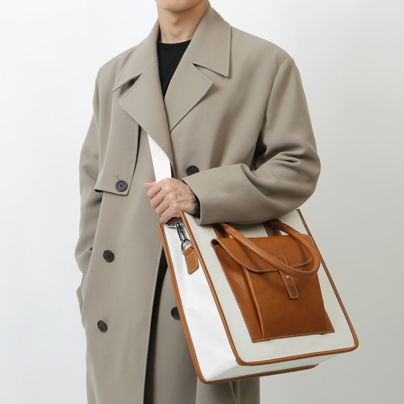 韩国Theaction时尚托特包青年男手提包双色拼接电脑包斜挎单肩包