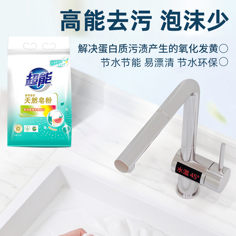 超能天然皂粉家用3kg大袋去渍除菌粉强力去污持久留香正品洗衣粉