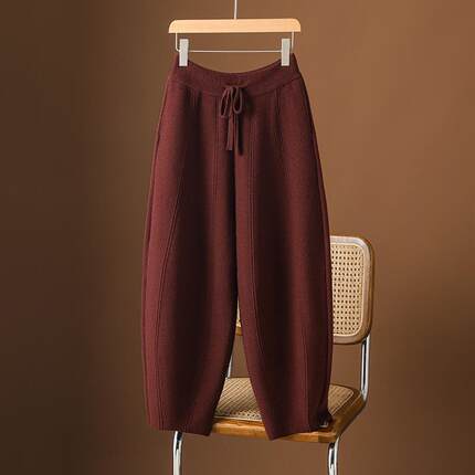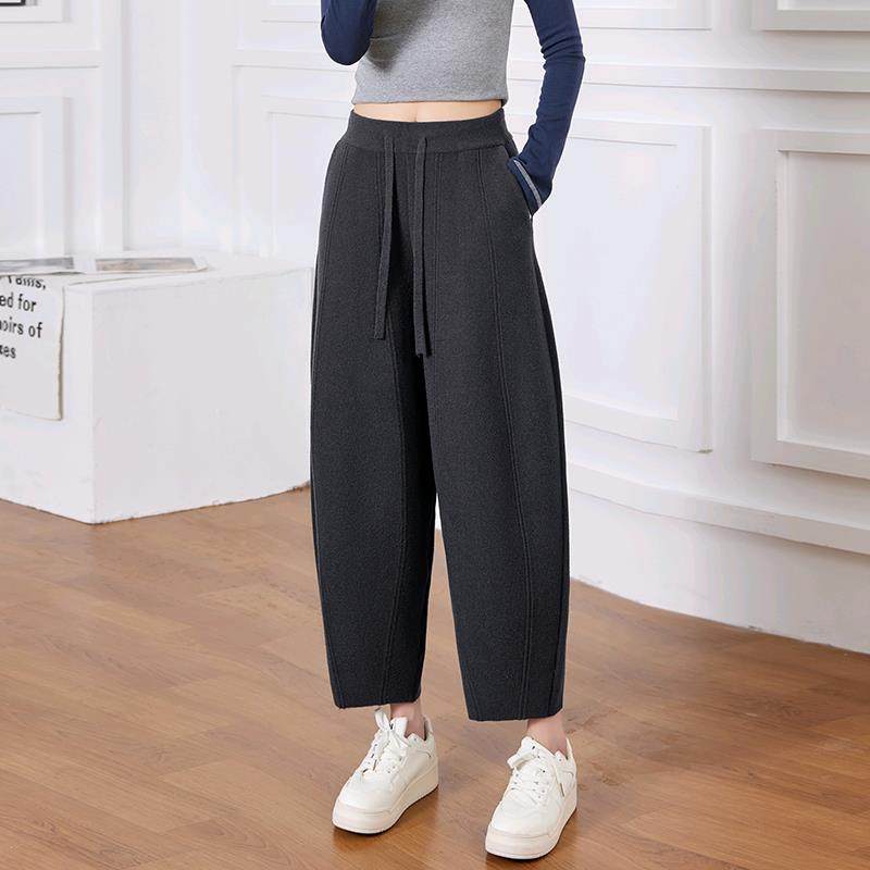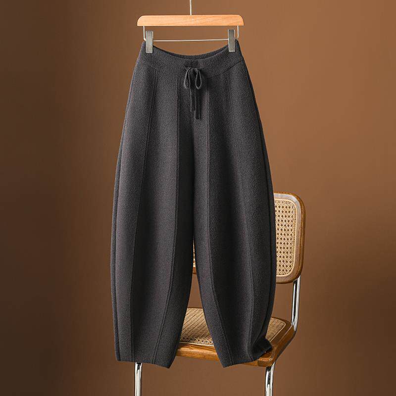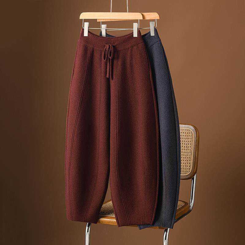 高端双面羊绒香蕉裤女秋冬宽松大码镰刀哈伦裤冬季加厚休闲弯刀裤
