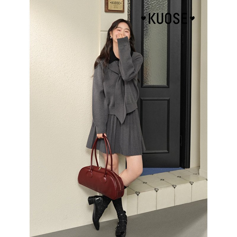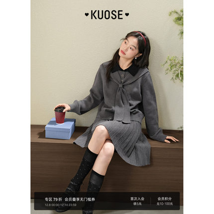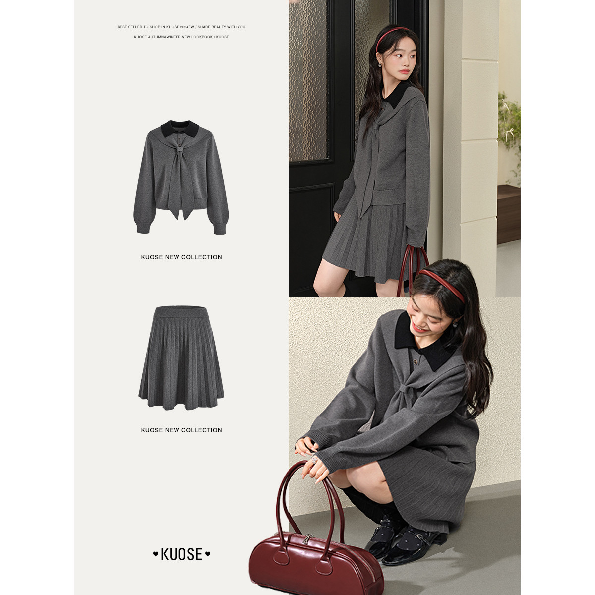 阔色灰色毛衣裙子两件套25秋冬季穿搭新款女学院miu系针织套装