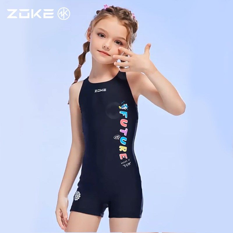 洲克儿童泳衣连体平角女孩专业训练保守温泉防氯青少年游泳装