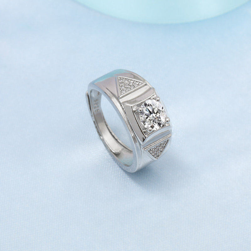 925镀银欧美时尚男士霸气硞石镶钻戒指老板帅气绅士男友结婚戒指