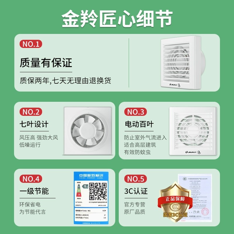 金羚电动百叶窗户式排气扇家用卫厕所换气扇圆生间排风扇强力静音