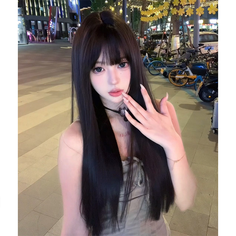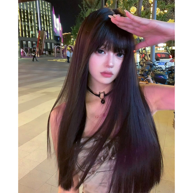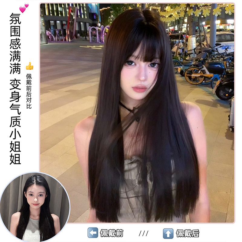 束朵假发女长发长直发日常圆脸lolita网红风韩系显白jk全头套假发