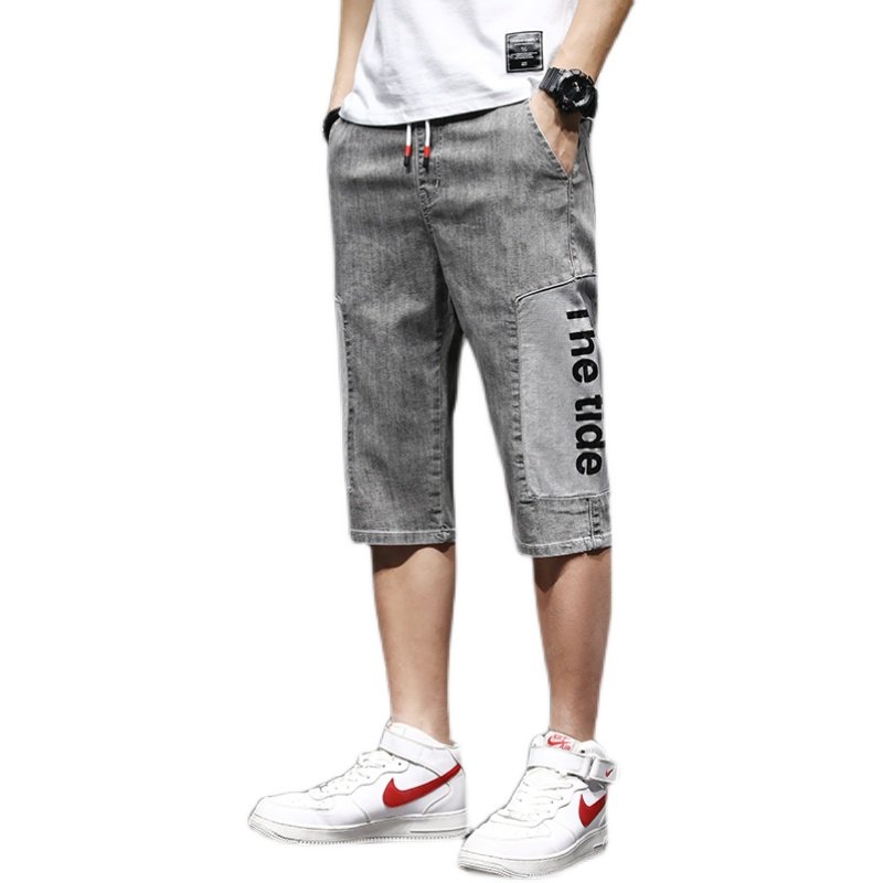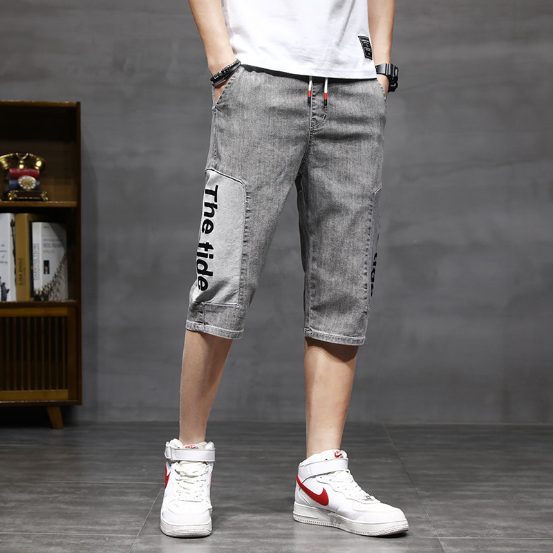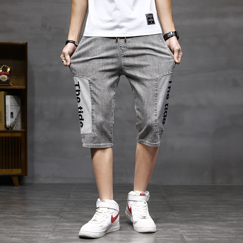 牛仔短裤男夏季薄款破洞韩版潮流宽松直筒休闲哈伦潮牌七分裤子男