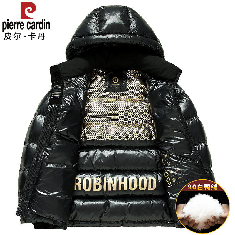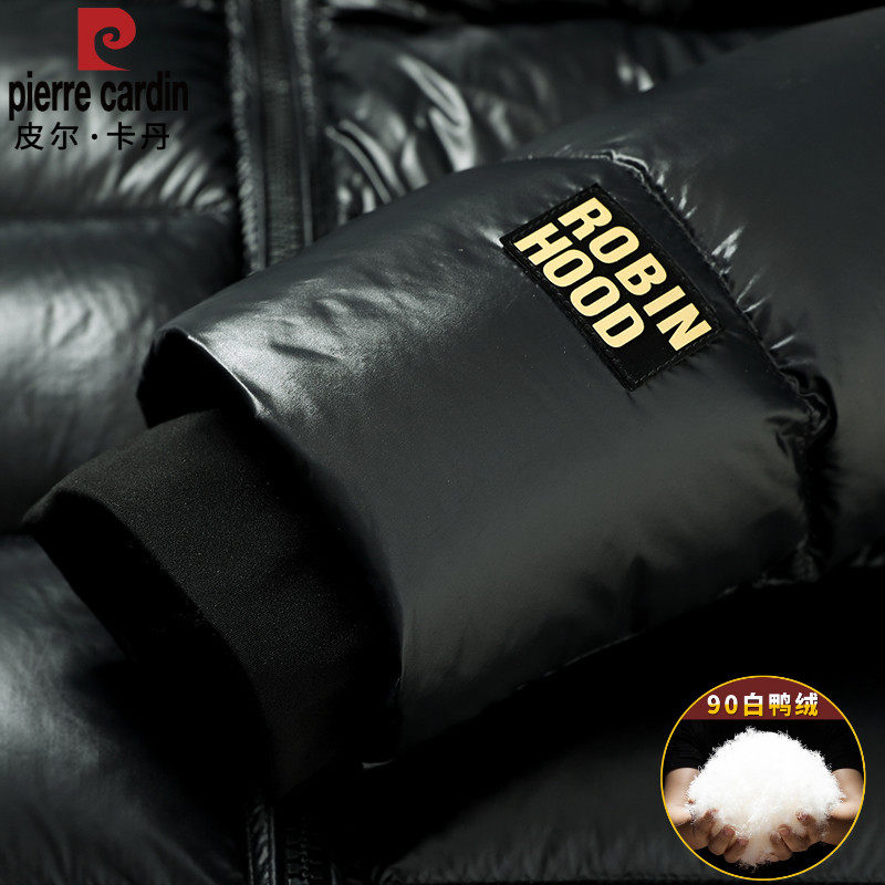 皮尔卡丹白鸭绒黑金羽绒服男款加厚防寒连帽短款男士保暖冬季外套