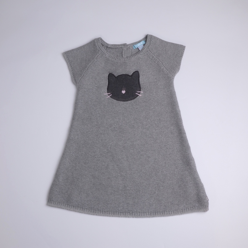 宝宝春秋针织连衣裙法国ok家女童洋气可爱公主羊毛混纺短袖A字裙