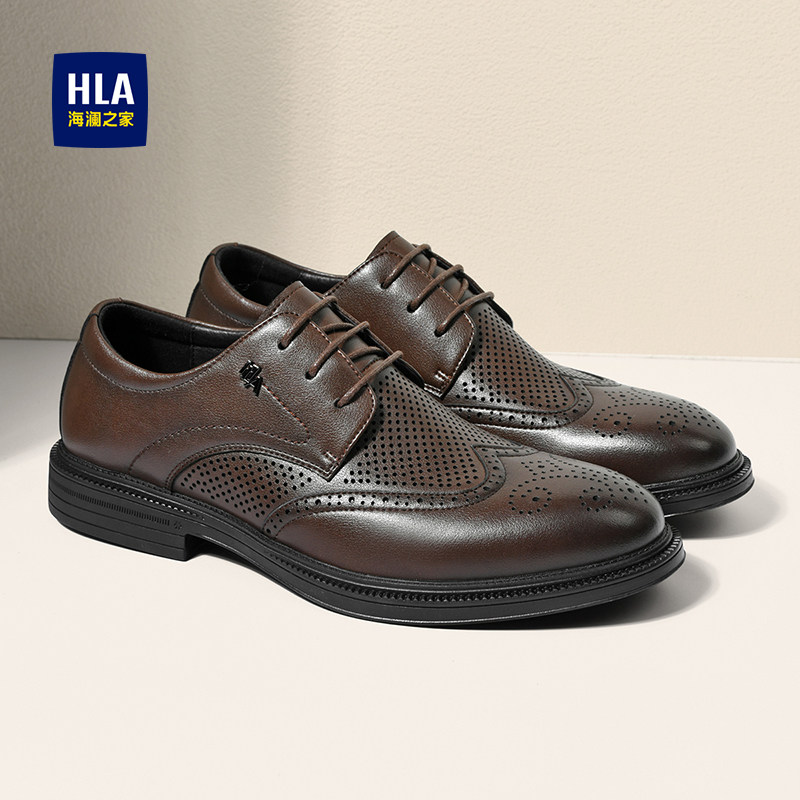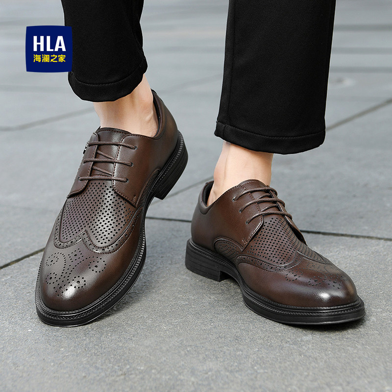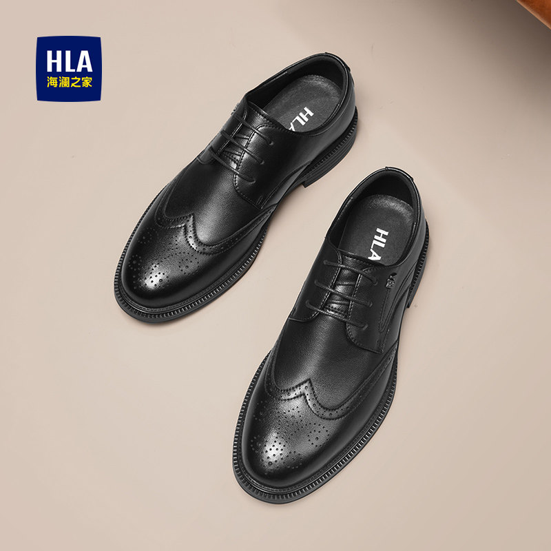 HLA/海澜之家2025新款布洛克皮鞋男英伦雕花商务正装公务员面试鞋