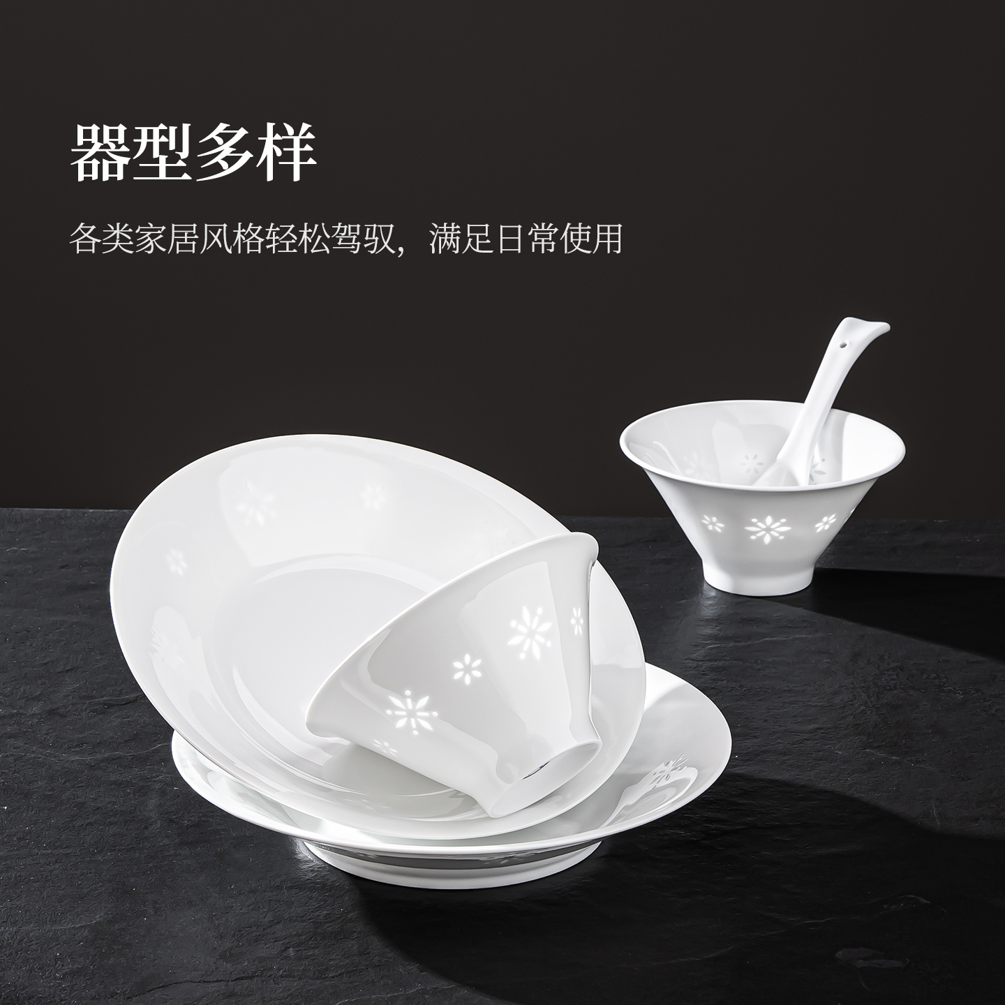 2025新款景德镇碗碟高白瓷玲珑瓷餐具套装家用乔迁新居碗盘礼盒装