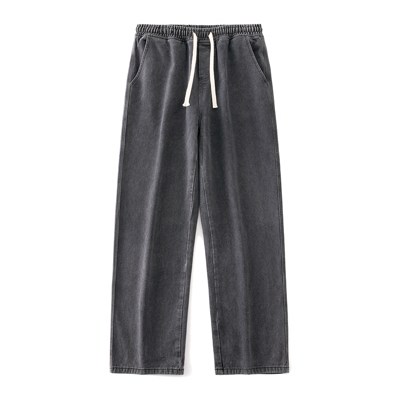水洗做旧烟灰色牛仔裤男士休闲裤