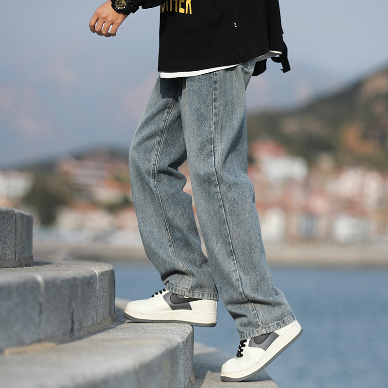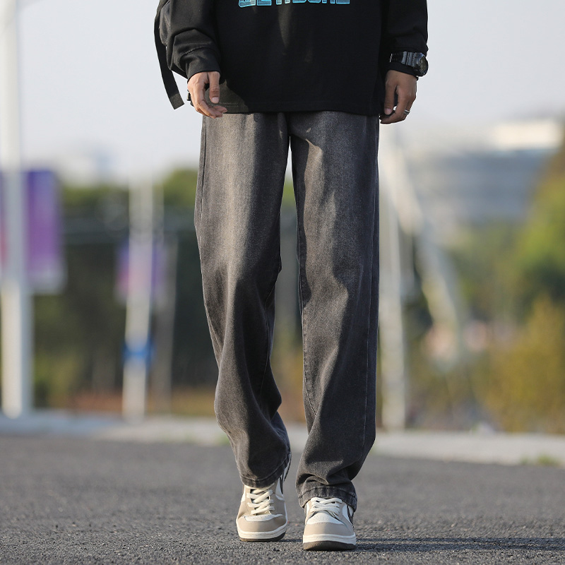 水洗做旧烟灰色牛仔裤男士春秋夏季薄款宽松直筒阔腿男生休闲裤子