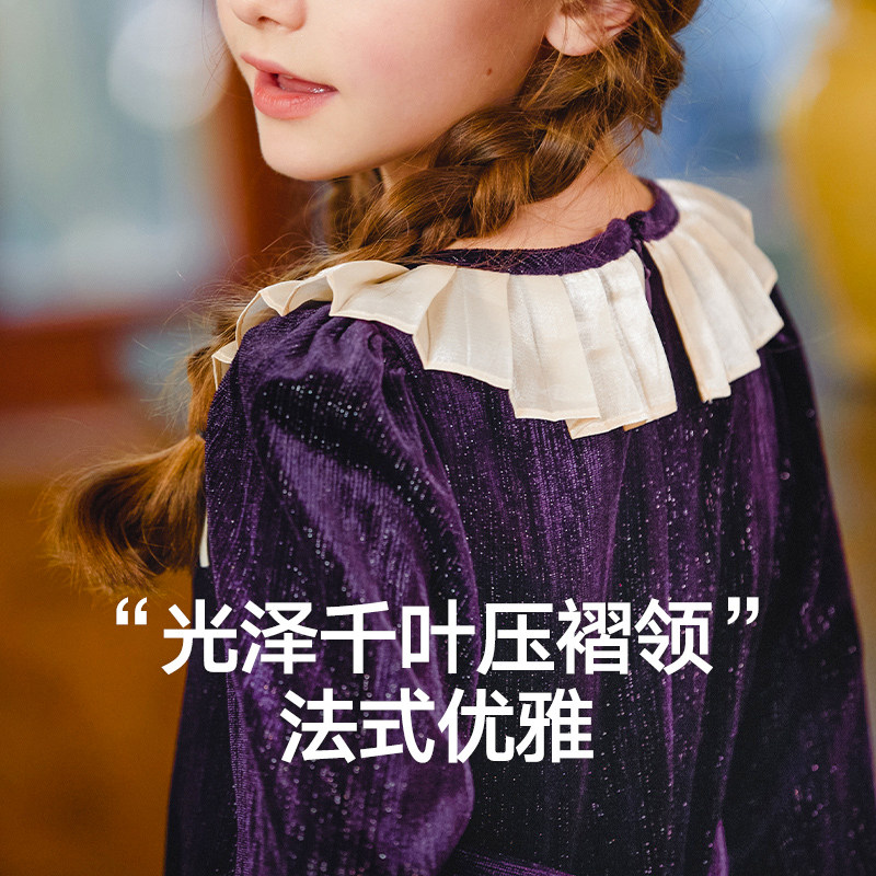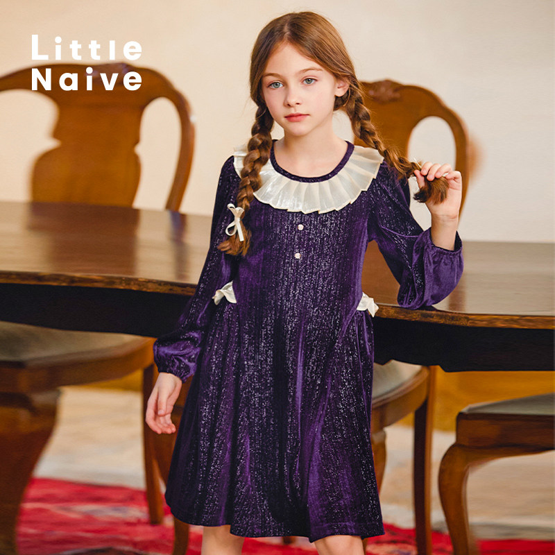 Little Naive儿童加绒连衣裙秋冬款圣诞丝绒裙女童生日礼服公主裙