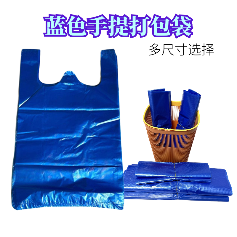 好质量蓝色手提塑料批发购物打包大小加厚果蔬垃圾袋背心式方便袋