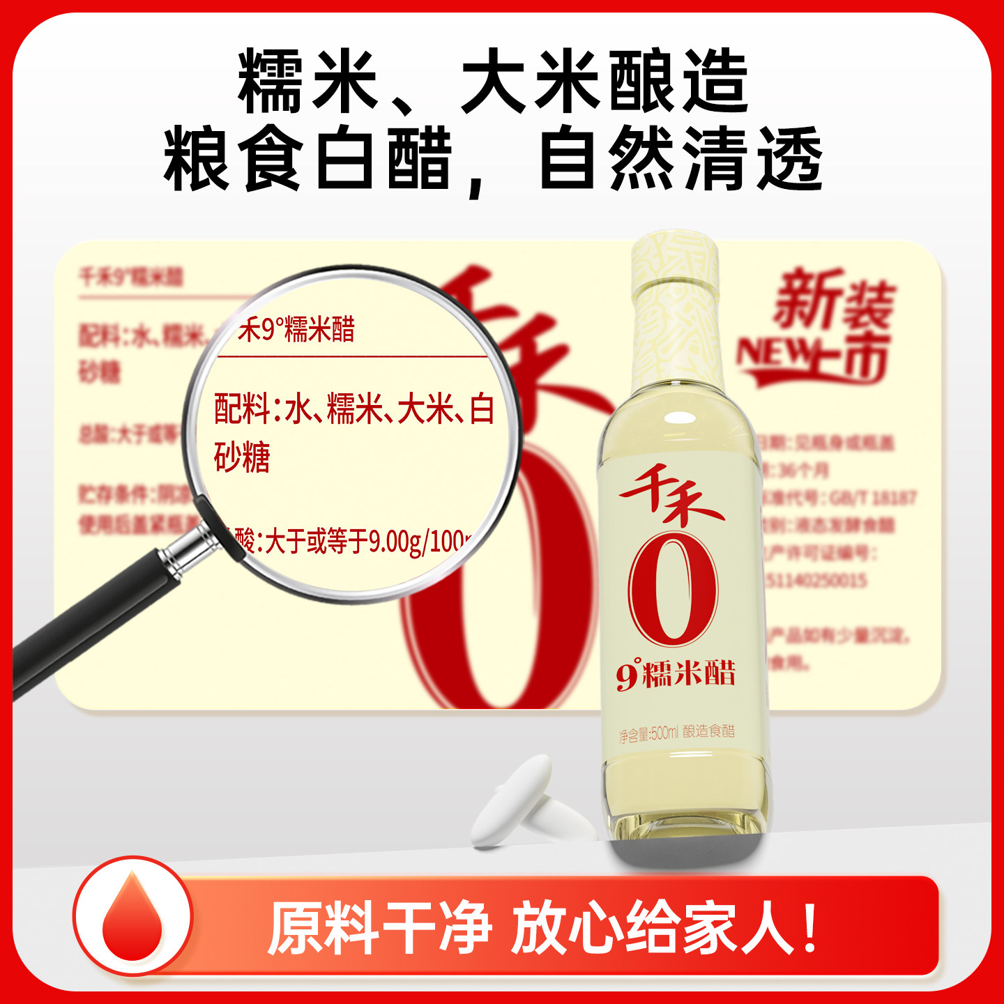 千禾9°糯米醋500ml-2 调味料酿造米醋炒菜凉拌蘸料泡凤爪