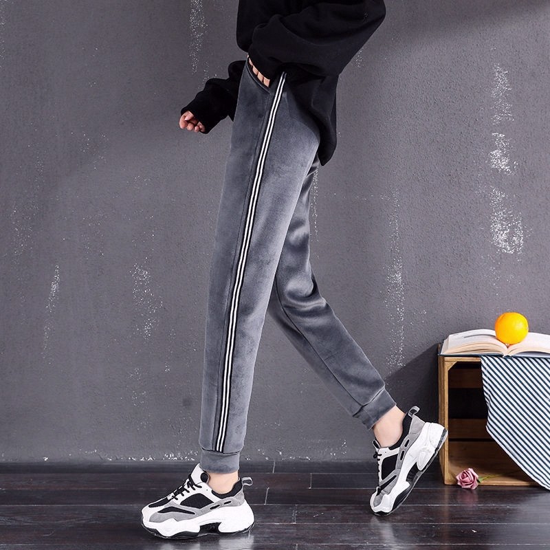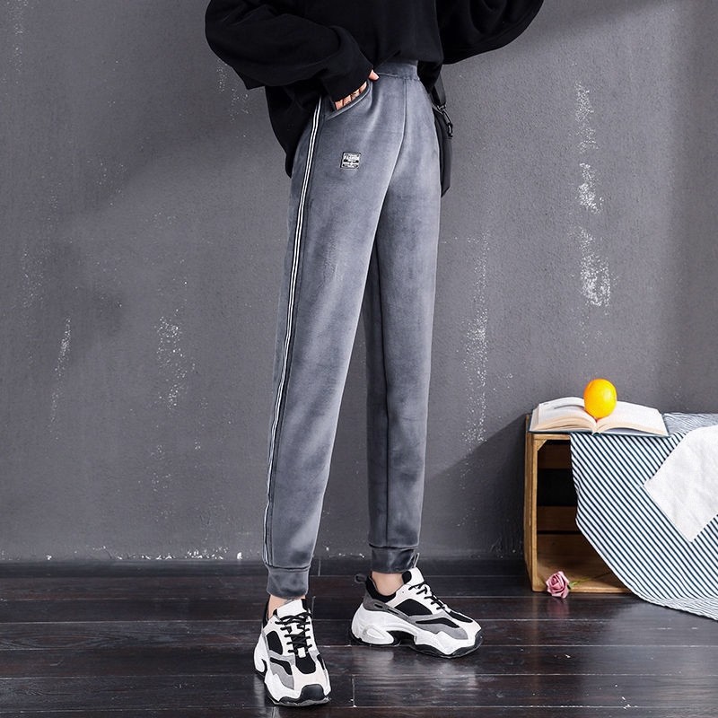 哈伦裤薄款卫裤子女休闲宽松加厚加绒运动裤打底金丝绒秋冬小脚裤