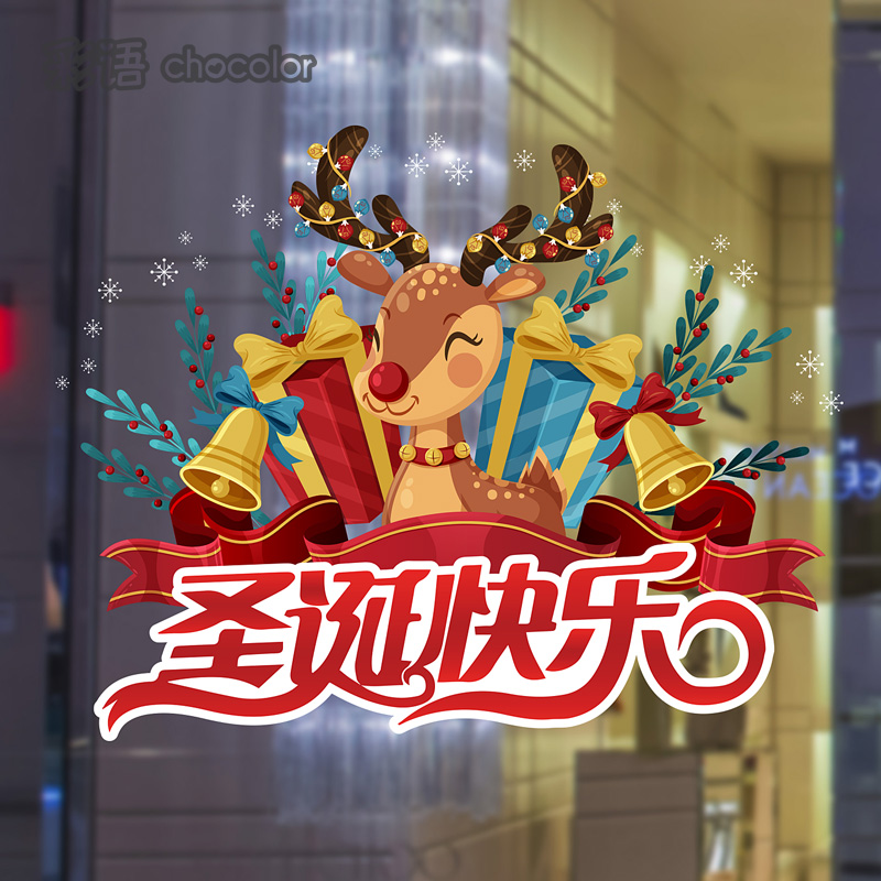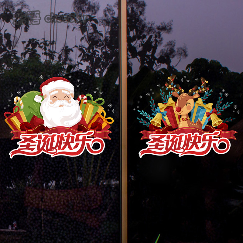 圣诞节玻璃贴纸新年商场橱窗装饰贴门贴元旦布置无胶静电贴窗花