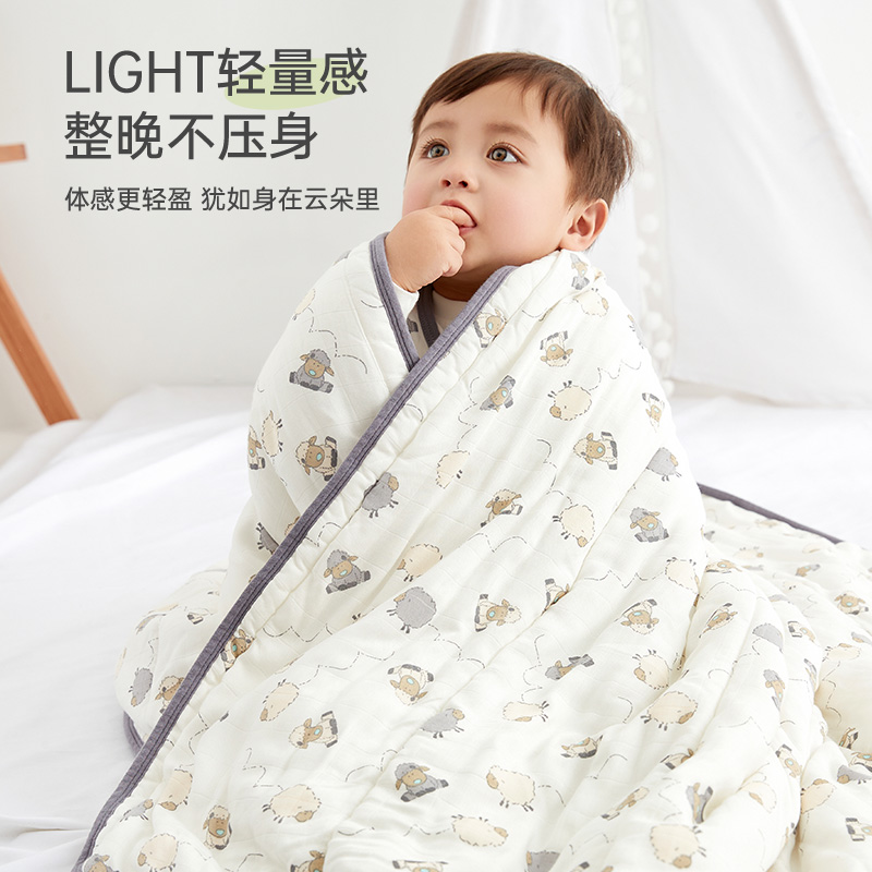 纳多果宝宝夹棉纱布抱被竹纤维亲子云朵恒温被学生午休被空调被