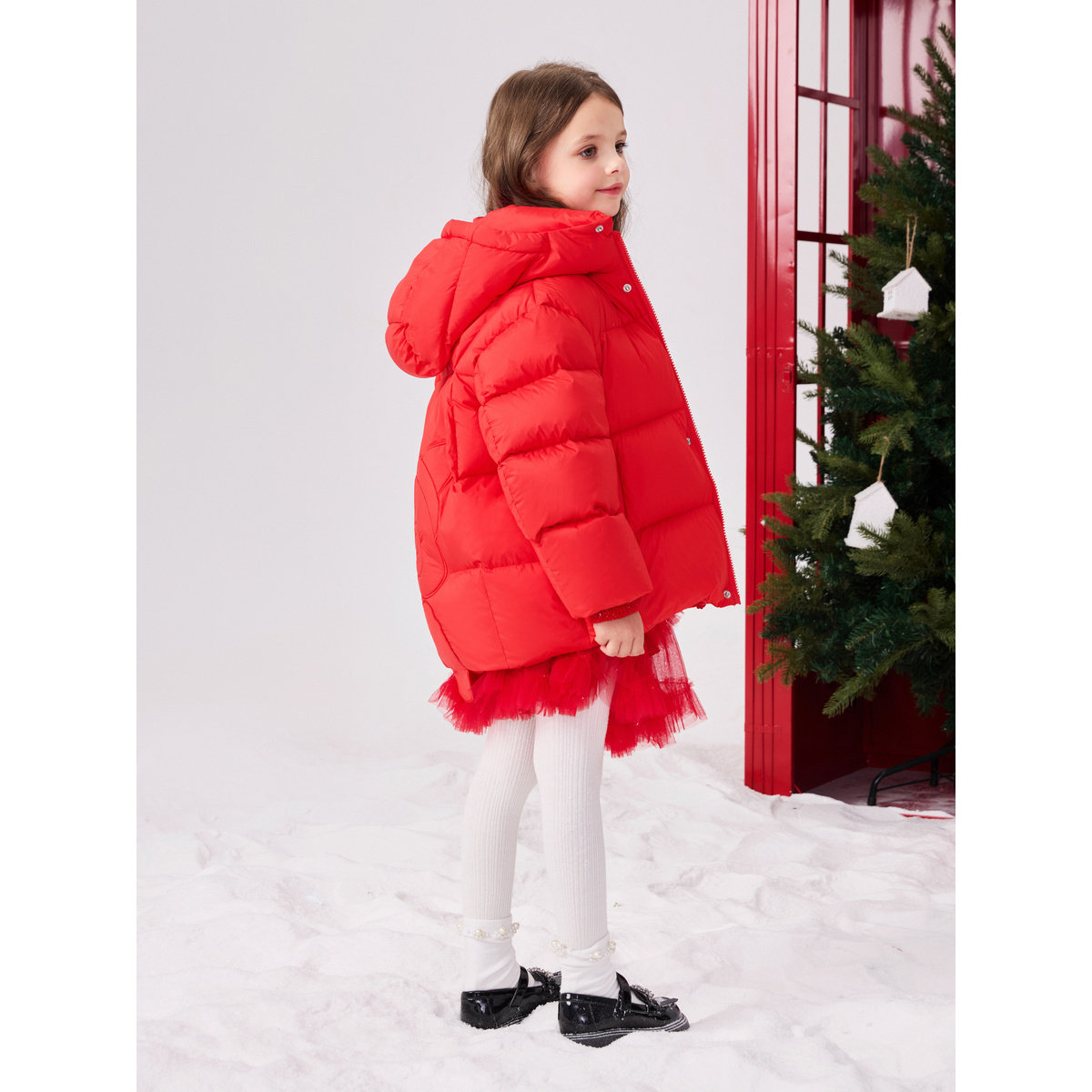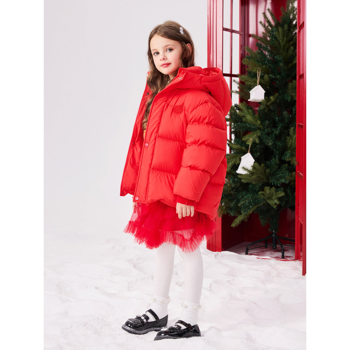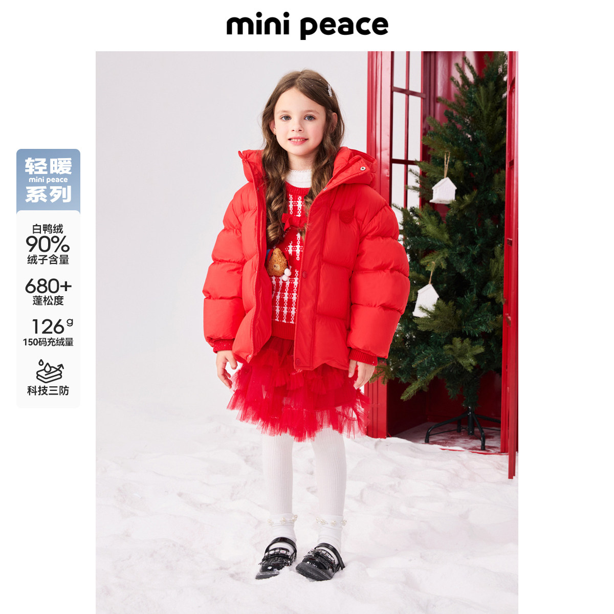 【专柜同款轻暖系列】太平鸟童装女童红色羽绒服三防面包服拜年服