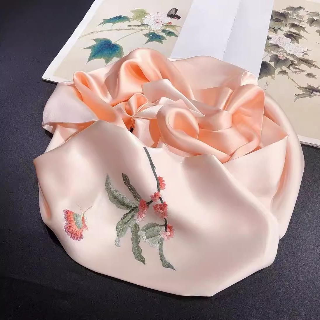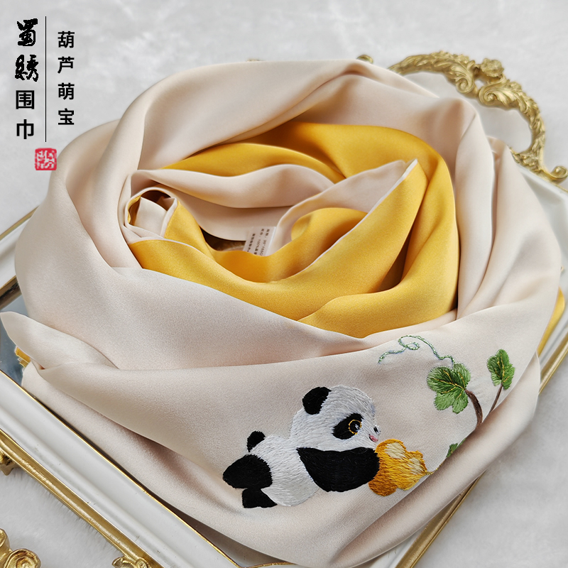 蜀绣手工刺绣丝巾真丝礼品送老外