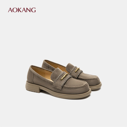 奥康 女鞋2025秋季乐福鞋气质绒皮一脚蹬浅口懒人单鞋通勤平底