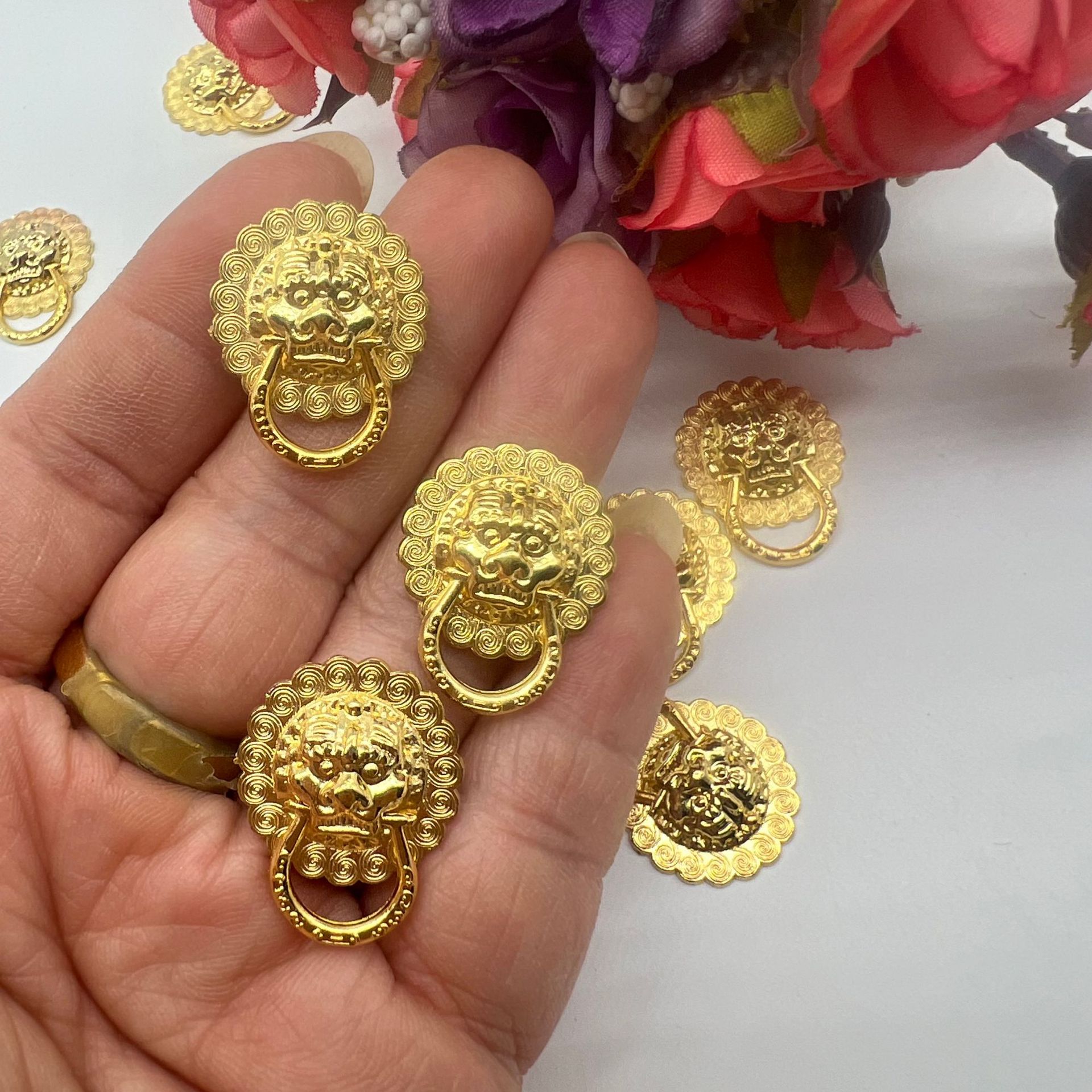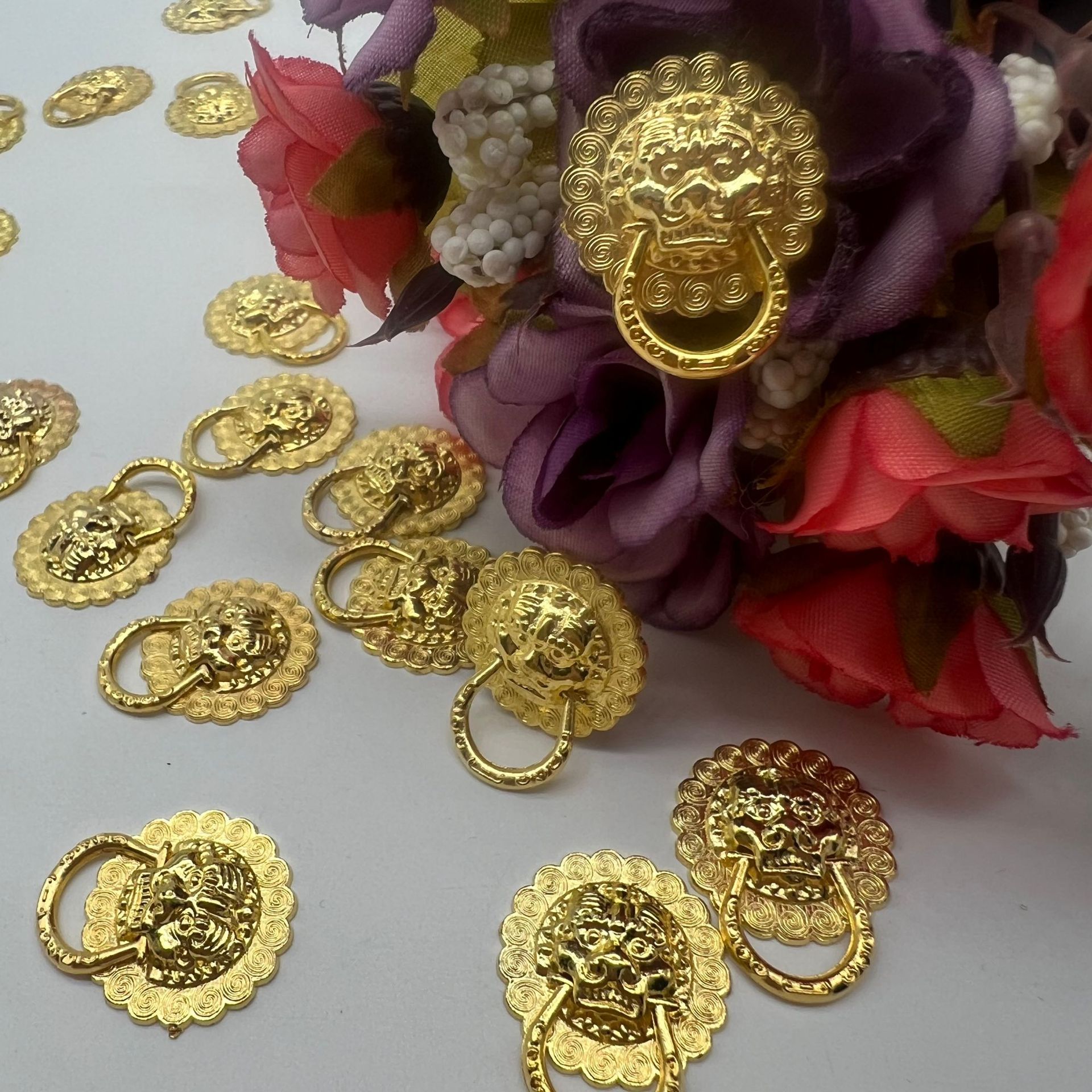 潮汕中秋折塔狮子头仿古拉手金银库门钉配件百宝箱装饰拉手小拉环