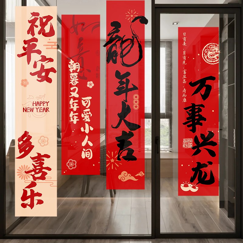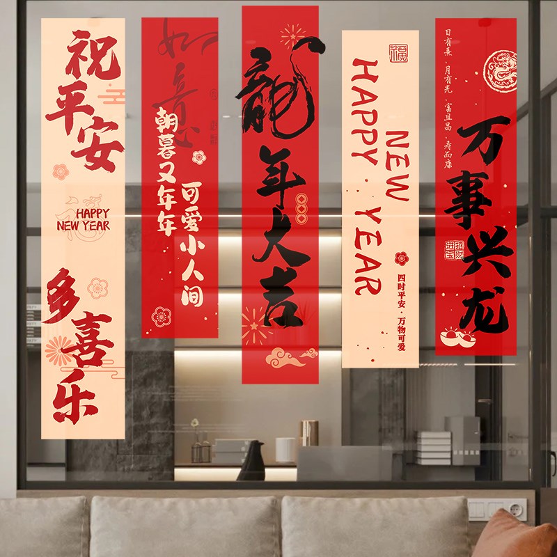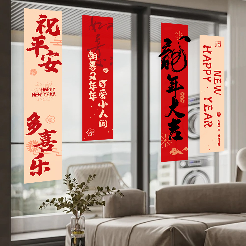 2025新年装饰贴画对联商场橱窗过年玻璃贴纸春节氛围布置场景窗花