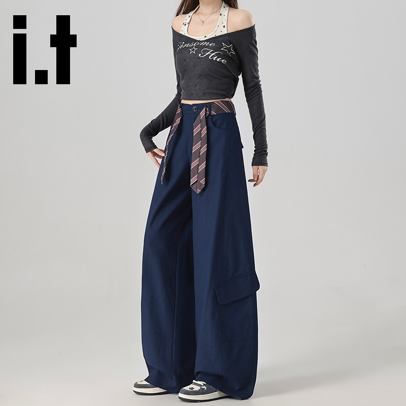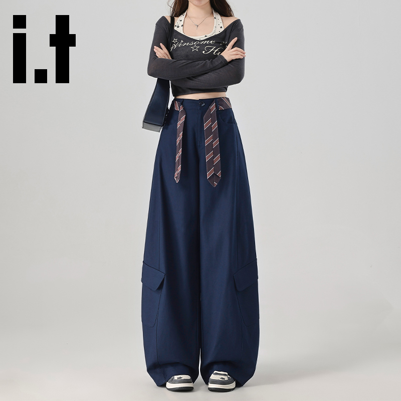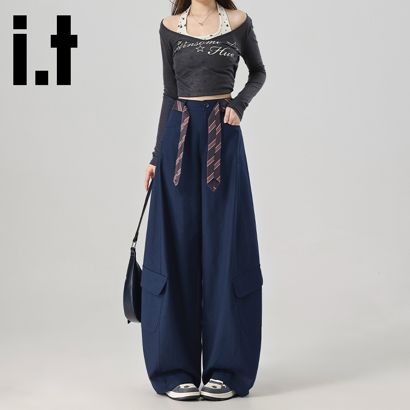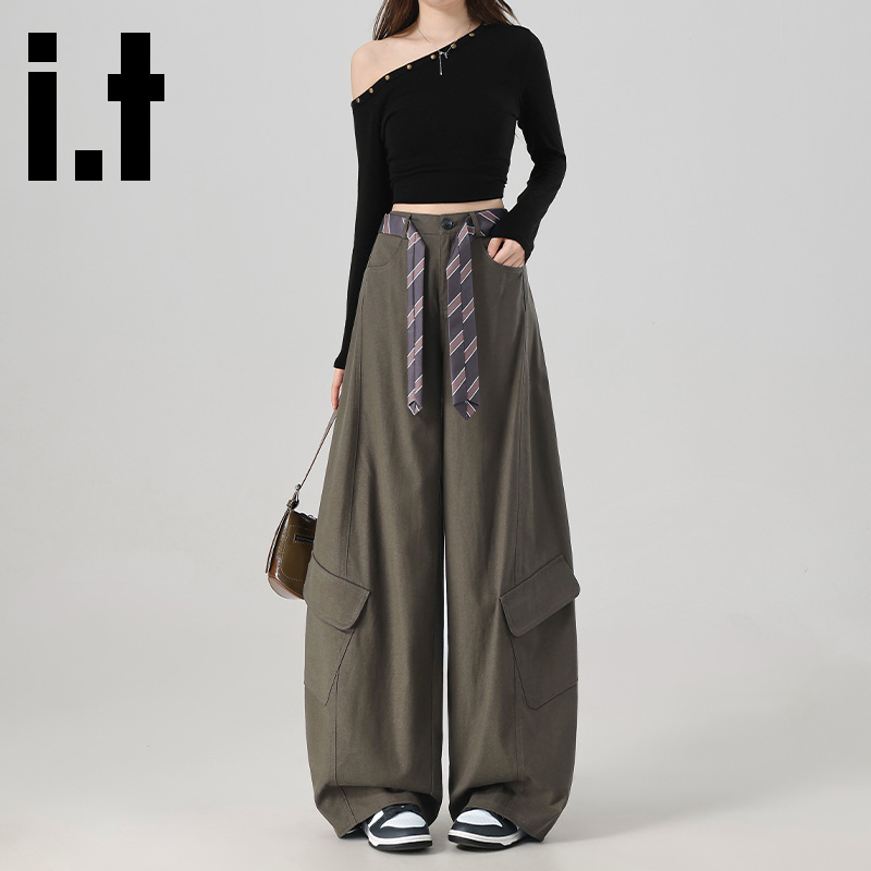 it:CHOCOOLATE美式大口袋工装裤女秋季复古宽松弯刀阔腿登山裤子