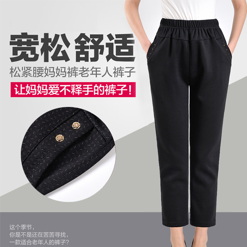 中老年女裤妈妈松紧腰高腰宽松老年人女装婆婆长裤春秋款奶奶裤子